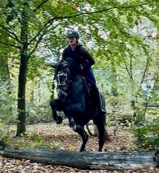 The three-year-old Diamond in the Sky is truly an exceptional horse in terms of character. Initially backed at the beginning of the year and then given an age-appropriate break, she has been back in work with her young rider for the past four weeks, who also initially backed her. Always well-behaved and with a good sporting attitude, Dia has already mastered her first jumps under saddle in addition to free jumping, including a cross-country course. She consistently proves to be straightforward, rideable, and a joy to handle on a daily basis. Please feel free to contact us at 0174/5630008.