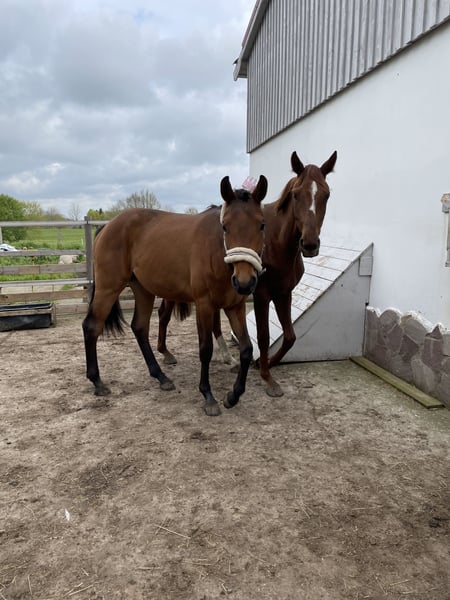 For sale: the 4-year-old mare Valera by Va' Pensiero x Borsalino. Valera has a friendly temperament and is always curious and affectionate. She also possesses above-average basic gaits! Currently, she is kept in a paddock with another mare, is accustomed to living with multiple horses, and has so far shown a rather subordinate rank. She has not been ridden or lunged yet. I am looking for a horse enthusiast who enjoys spending time with her and giving her plenty of attention, which is why she will not be sold to a dealer. For more information, photos, and videos of Valera, please feel free to call me or send a message via WhatsApp to the following number: +49 176 80156296.