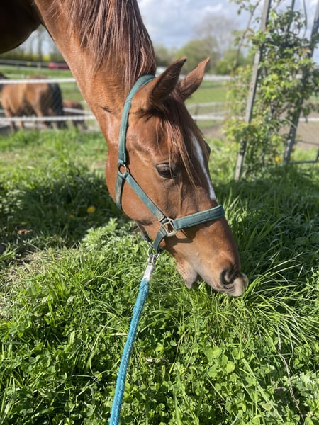À vendre : la jument de 4 ans, Valera, par Va' Pensiero x Borsalino. Valera a un caractère très sociable et est toujours curieuse et câline. Elle possède également des allures de base au-dessus de la moyenne ! Actuellement, elle vit en paddock avec une autre jument, connaît la vie en groupe avec plusieurs chevaux et s’est montrée jusqu’à présent plutôt dominante. Elle n’a pas encore été montée ni lungée. Je souhaite pour Valera un propriétaire passionné qui prendra plaisir à s’occuper d’elle et lui consacrera beaucoup d’attention, c’est pourquoi elle ne sera pas confiée à un marchand. Pour plus d’informations, de photos ou de vidéos de Valera, n’hésitez pas à me contacter par téléphone ou à m’envoyer un message via WhatsApp au numéro suivant : +49 176 80156296.
