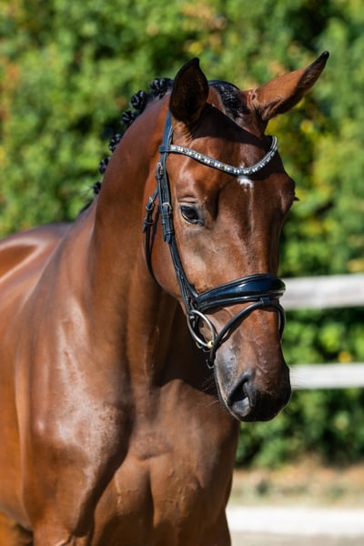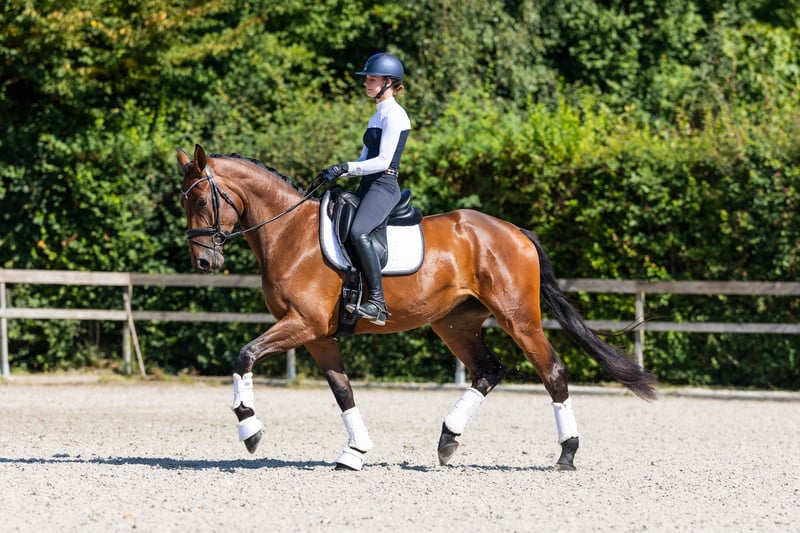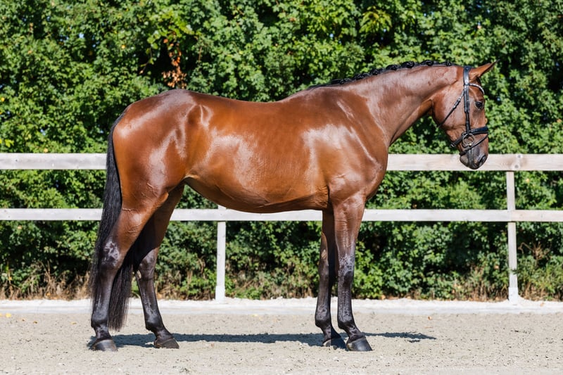 Lernen Sie Temptation Love kennen, eine Stute von 2022, von Total Diamond PS aus einer Franziskus-Stute, mit einer Größe von 1,74 m. Diese junge und sehr vielversprechende Warmblutstute vereint Größe mit Selbstbewusstsein und zeigt drei gute Gangarten, wobei der Galopp besonders heraussticht. Mit ihrer Präsenz, athletischen Fähigkeit und Arbeitsbereitschaft bringt sie die Qualitäten eines zukünftigen Spitzen-Dressurpferdes mit. Temptation Love wird stolz von der Reiterin Mette Vossen geritten und präsentiert, was das Engagement und die Vision von FAB Stables BV widerspiegelt – die Zucht und Präsentation von Dressurpferden höchster Qualität.