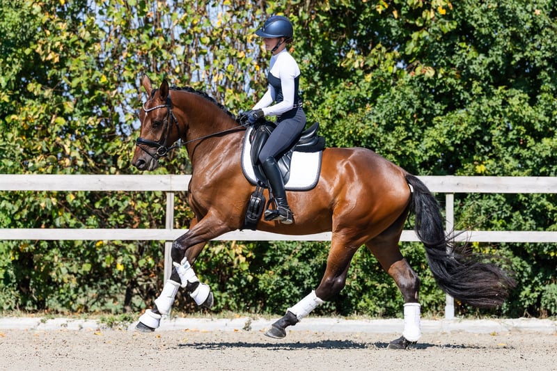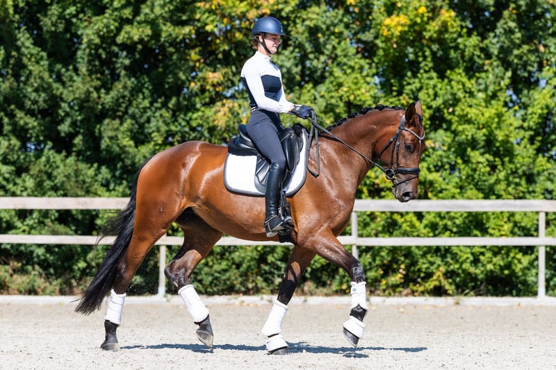 Découvrez Temptation Love, une jument de 2022 par Total Diamond PS, issue d'une mère Franziskus, mesurant 1,74 m. Cette jeune et très prometteuse jument de sang chaud allie taille et confiance, montrant trois bonnes allures dont le galop se distingue vraiment. Avec sa présence, sa capacité athlétique et sa volonté de travailler, elle possède les qualités d'une future candidate de haut niveau en dressage. Temptation Love est fièrement montée et présentée par la cavalière Mette Vossen, reflétant le dévouement et la vision de FAB Stables BV – produisant et présentant des chevaux de dressage de la plus haute qualité.