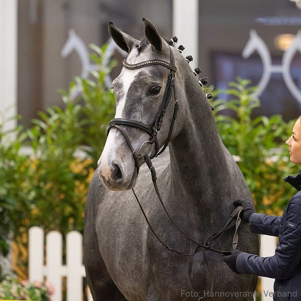 Dream of Rose präsentiert sich aufmerksam und reaktionsschnell über dem Sprung und bringt viel Potenzial mit. Ihre Halbschwestern Perugia v. Perigueux (SPR: 1,40 m mit Lea Steinbrüchel) und Flora v. Light My Fire (SPR: L) haben bereits erfolgreich im Sport überzeugt. Weitere erfolgreiche Vertreter aus dieser bewährten Mutterlinie sind Luke v. Light My Fire (SPR: 1,30 m mit Anna Ostermann) und Rubino v. Rubico (SPR: 1,30 m mit Andreas Krone). 1. Generation Sportpferde Springen: Perugia/Perugia 6 v. Perigueux (SPR: 1,40 m mit Lea Steinbrüchel). Aufbauprüfungen Springen: Flora 597 v. Light My Fire (SPR: L). Auktionspferde: Devin v. Diacontinus (VA 2020). 2. Generation Sportpferde Springen: Luke 203 v. Light My Fire (SPR: 1,30 m mit Anna Ostermann); Rubino 76 v. Rubico (SPR: 1,30 m mit Andreas Krone). Aufbauprüfungen Springen: Fly Capitol v. Fly High (SPR: L). 4. Generation Sportpferde Dressur: Danny Belucci v. Don Vino (DRE: S** mit Melanie Embacher). Aufbauprüfungen Springen: Gallyano GS v. Gambler's Cup (SPR: L). Auktionspferde: Don Baily v. Don Vino (VA 2007); Duvalier 20 v. Don Vino (VA 2008). 5. Generation Sportpferde Springen: Martin 11 v. Markus (SPR: M mit HEIDEMANN,HERMANN). Mutter: Flocke ZL: 7/5 Großmutter: Carmen ZL: 7/4 Das Pferd ist ein Verdener Auktionspferd und wird am 25.01.2026 online versteigert. Vom 12.01. bis zum 25.01. kann das Pferd jeden Tag beim öffentlichen Training besichtigt und ausprobiert werden. Das Startgebot bei der Versteigerung ist 8.000 Euro.