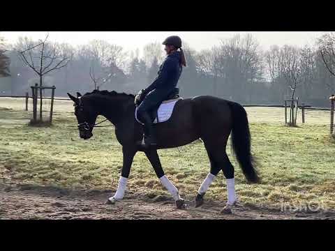Deze merrie overtuigt niet alleen door haar drie goede basisgangen, vooral haar galop is indrukwekkend. Haar goede karakter komt evenzeer naar voren; of het nu in het terrein, in de volledige rijhal of op de grote buitenbak is, ze blijft altijd kalm en onbevreesd. Daarom kunnen wij ons deze merrie ook goed voorstellen voor jonge ruiters die willen overstappen of ambitieuze recreatieruiters. Ze is bekend met grondwerk en vrijspringen en toont hier ook talent, waardoor alle deuren openstaan om een veelzijdigheidspaard te worden bij de juiste opleiding. Vanwege haar nog jeugdige bouw is ze pas op vierjarige leeftijd aangezad, en ze bevindt zich nog steeds in haar ontwikkeling en zal nog wat groeien. Goede röntgenfoto’s, inclusief de rug, zijn beschikbaar.