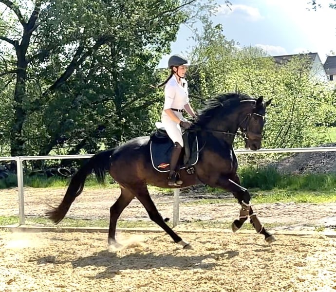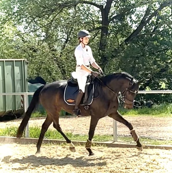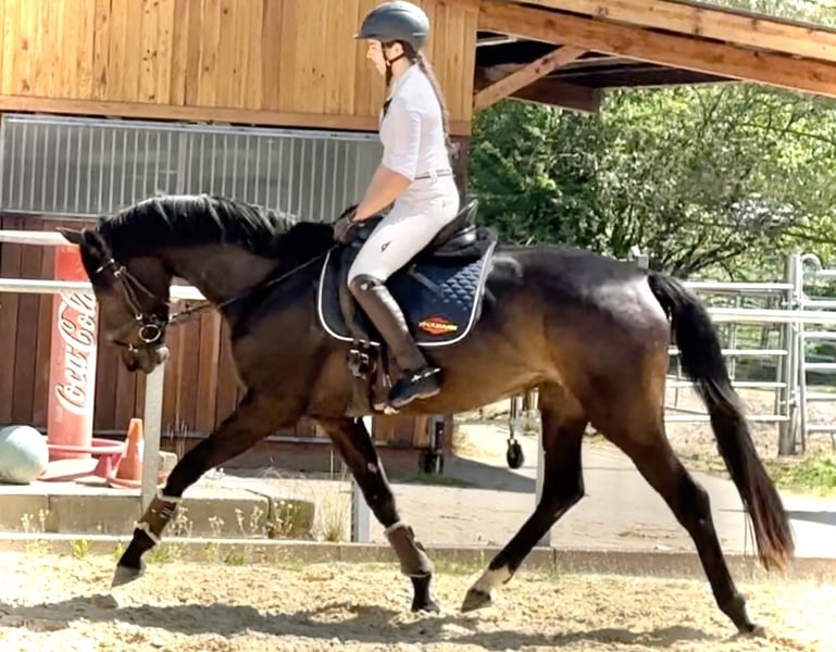 Sehr edel, 3 überdurchschnittliche GGA, feinfühlig mit wenig Druck zu reiten, mutig für Reiterin, die sie in aller Ruhe schön fördert Direkt vom Züchter, 4 j. schonend von junger Reiterin angeritten, aktuell auch Training über Cavalettis und demnächst geht es auch ins Gelände Mutter S-Line ist Vollschwester zu 4 *S Grand Prix Stute Schöne Scarlett, die über viele Jahre hocherfolgreich mit Helen Langehanenberg war. Aus der Londonderry-Mutter stammt auch das Elitepferd S* Divino Negro, weitere Erfolgspferde aus dem Stamm.