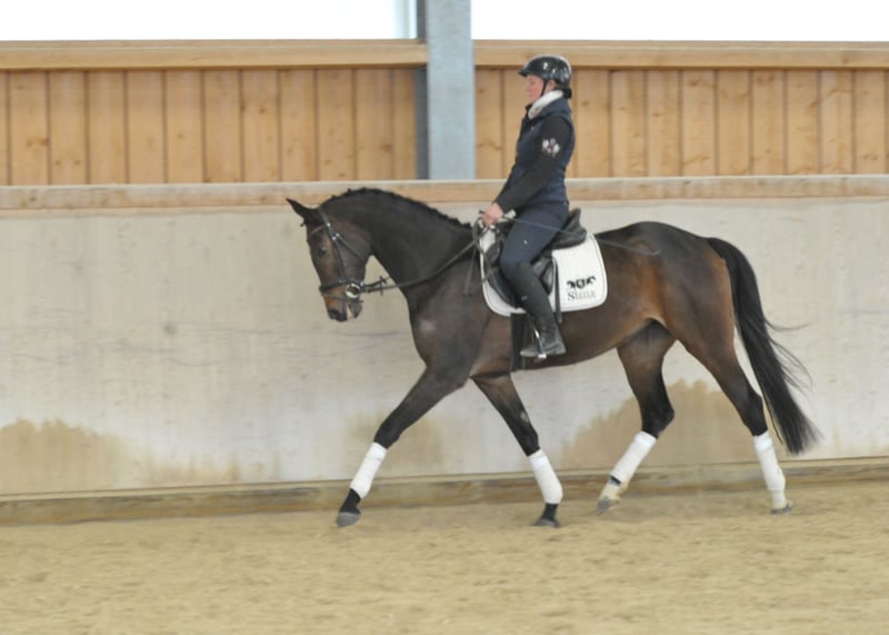 Bezaubernde 4 j. Lady mit bester Rittigkeit und viel Talent. Diese äußerst schöne Sportstute von Da Costa macht einfach nur riesig Spaß zu Reiten, zwar noch nicht so lange unterm Sattel macht sie ihre Aufgaben tadellos, schon am Zügel und mit viel Gleichmaß ausgestattet. Ein richtiges Doppeltalent für Dressur uns Springen mit viel Potential. Ein ideales Damen- und Juniorenreitpferd.