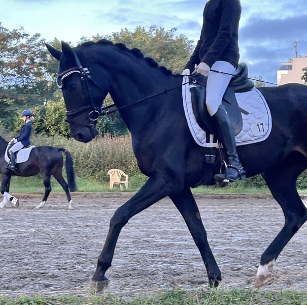 Bildschön, leichtrittig, brav im Gelände, erfolgreich auf Turnieren, absolut artig und einen sehr guter TÜV - klingt zu schön um wahr zu sein?! Nein, es ist tatsächlich so und wir sind sehr stolz, diese tolle Stute gezüchtet zu haben. Wir haben sie ganz in Ruhe erwachsen werden lassen und eine gute Freundin hat sie behutsam und vor allem vielseitig ausgebildet. Barbie war in der vergangenen Saison mehrfach platziert und konnte in der Dressurpferde A unter anderem den dritten Platz belegen. Die Lektionen für L sind ihr bekannt. Besonders stolz sind wir auf ihre Leichtrittigkeit und dass sie mit nur einmaligem "Probereiten" ein 13-jähriges Mädchen aus dem Stall erfolgreich zum 2. Platz einer E-Dressur getragen hat, als ihr Pferd plötzlich krank wurde. Daher können wir sie auch wirklich als tolles Umsteigerpferd empfehlen. Auch auf die Ausbildung im Gelände haben wir viel Wert gelegt, da es uns wichtig ist, dass unsere Pferde gut UND abwechslungsreich ausgebildet werden. Barbie steht jeden Tag draußen und verträgt sich auch hier mit allen anderen. Da wir weiter züchten suchen wir für diese tolle Stute nun einen neuen Heimatstall, wo sie gern weiter dressurmäßig gefördert und ihr Weg im Sport weiter ausbildet wird. Von der Qualität, die sie mitbringt, sind hier wenig Grenzen gesetzt. Wichtig ist uns auch eine weiterhin gute Haltung mit täglichem Weide-/Paddockgang und ein abwechslungsreiches Training. Wenn dies zu dir passen könnte, dann melde dich gern bei uns und wir vereinbaren einen Telefontermin. Bitte habt Verständnis dafür, dass wir nur Personen zum Probereiten einladen, bei denen wir eine echte Absicht sehen und bei denen es von beiden Seiten aus passen könnte. (Video wird erst nach erfolgtem Telefonat versendet. Röntgenbilder sind vorhanden und werden bei Kaufinteresse gern zur Verfügung gestellt)