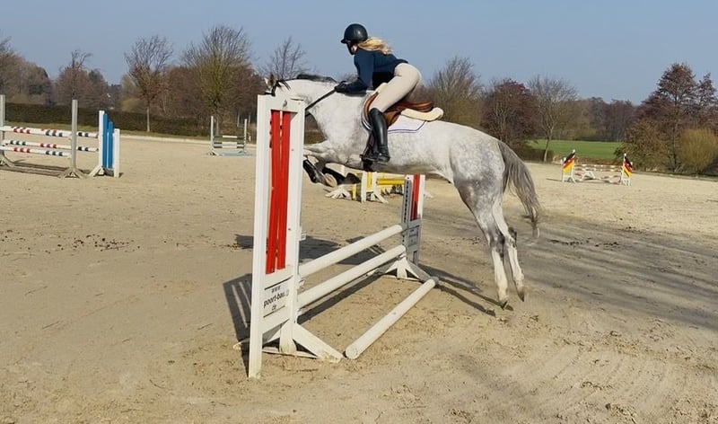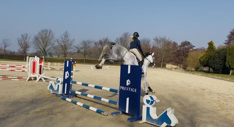 Hannoveraner Stute, geb. 2021, Schimmel, mit einem Stockmaß von 167 cm – eine vielversprechende Nachwuchshoffnung für den Springsport. Diese elegante Stute überzeugt durch ihre athletische Konstitution und ihr springtalentiertes Naturell. Sie ist bereits in der Ausbildung und zeigt großes Potenzial für den Turnierreitsport. Mit ihrer ansprechenden Erscheinung und ihrem freundlichen Wesen ist sie sowohl für ambitionierte Nachwuchsreiter als auch für erfahrene Springreiter eine ideale Partnerin. Eine echte Bereicherung für jeden Springstall! Wirklich ein Pferd für den ganz ambitionierten Springreiter.