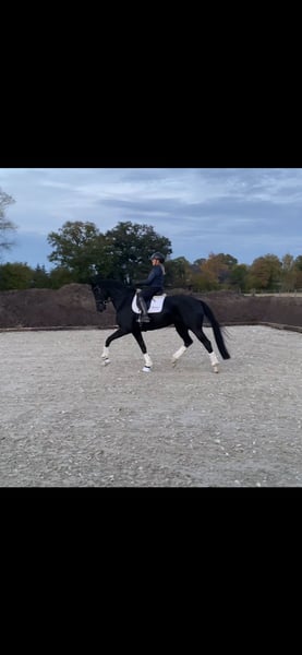 Im Auftrag verkaufen wir diese wunderschöne Rappstute! 5j , öffentlich noch nicht vorgestellt, aber direkt einsetzbreit. Mit ihrem Charakter und Charme aus Gold wickelt sie einen direkt um den Finger. Sehr unkompliziert im täglichen umgehen. Unter dem Sattel weiß sie durch ihre hohen Rittigkeitswerte immer zu gefallen. Sie ist leicht im Genick und hat einen angenehmen Go. Auch unter dem Springsattel zeigt sie sich talentiert und springt schon einen kleinen Parcours. Ideal also auch als Allrounder. Ein Video kann bei Interesse gerne per WhatsApp verschickt werden.