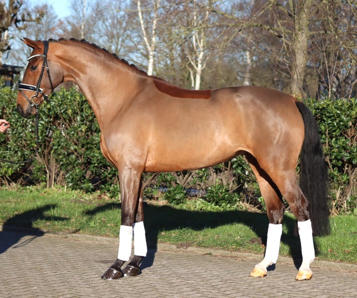 Leuke 4-jarige merrie van Von und Zu x Fischermans Friend/Fabriano met 3 uitstekende gangen. Ze is sinds kort onder het zadel en heeft veel potentie als toekomstig dressuurpaard. Prijs plus BTW. Alleen telefonisch aanvragen, e-mails worden niet beantwoord.