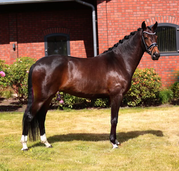 For sale is a talented Hanoverian mare, born in 2021. This mare has been started under saddle this year and already shows great confidence in all three basic gaits. She is very eager to learn and impresses with her balanced nature, being very well-mannered both in handling and under saddle. Ideal for riders looking for a promising horse for the future, whether for leisure or competition. Viewings are possible by appointment. X-rays and videos available upon request at info@gestuet-brune.com We look forward to your message! For inquiries or further questions, please contact Mr. List by phone: 0172 4047510.