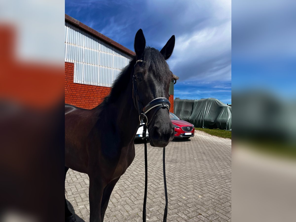 Dark Delight ist eine vierjährige Tochter von Despacito. Seit Mitte/Ende Dezember ist sie nun richtig unter dem Sattel und zeigt sich sehr lernwillig, motiviert und brav in der Arbeit. Delight hat einen Charakter aus Gold, sie ist unerschrocken, gut erzogen, vorsichtig mit dem Menschen und freut sich immer über Aufmerksamkeit. Dazu duldet sie ohne Probleme jeglichen Unfug vom Reiter, ob es Jacke an-/ ausziehen, aus einer knisternden Flasche trinken oder anderes ist, sie bleibt stets unbeeindruckt. Delight ist korrekt und mit Ruhe ausgebildet und lernt nun die Lektionen der Dressurpferde A. Reiterlich ist sie korrekt an den Hilfen und gibt einem immer ein sicheres Gefühl. Ein Video von ihr kann auf Anfrage gerne versendet werden. Bei Fragen oder Interesse einfach Telefonisch unter 04163 7706 oder auch über WhatsApp unter 01525 6448041 melden.