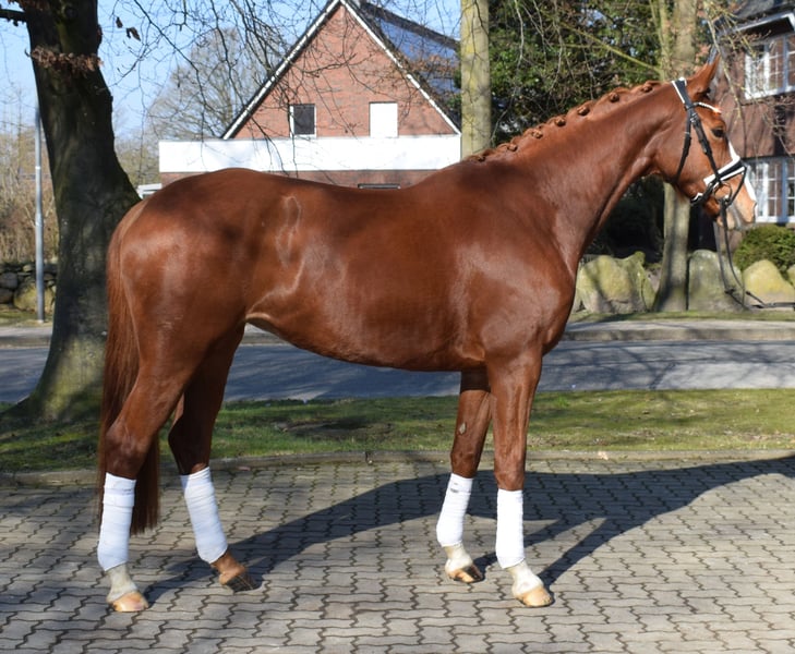 Beautiful mare with exceptional conformation and movement of the highest quality. Celebrity is easy to ride, exudes charisma – just as you would expect from a top-class dressage horse. She has a kind and attentive temperament and is well socialized within the herd. Test rides available at any time by appointment. For more information, please visit our homepage. Hof Heisterbusch Team.