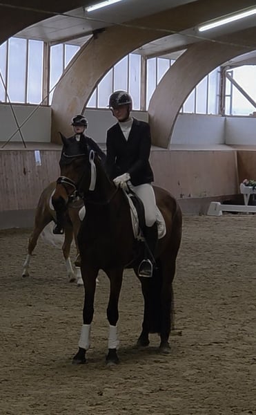 Zum Verkauf steht unsere talentierte Nachwuchsstute Fee, die mit Qualität, Rittigkeit und Leistungsbereitschaft überzeugt. Fee ist bei uns geboren und wurde von Anfang an mit viel Sorgfalt aufgebaut. Vierjährig wurde sie schonend angeritten und seitdem kontinuierlich und professionell weiter ausgebildet. Bereits in dieser Turniersaison konnte sie sich in ihrer erst zweiten Prüfung direkt den 3. Platz in einer A-Dressur mit der Wertnote 7,5 sichern – und das gegen erfahrene, ältere Konkurrenz. Fee überzeugt nicht nur durch ihre Leistungsbereitschaft, sondern vor allem durch ihren hervorragenden Charakter und ihre drei überdurchschnittlich guten Grundgangarten. Durch ihre Rittigkeit und ihr angenehmes Wesen ist sie sowohl für junge Reiter/innen, Umsteiger als auch Amateure bestens geeignet. Sie ist ein Pferd, mit dem man sofort losreiten und auf dem Turnier glänzen kann. Im Training sind bereits Lektionen der Klasse L sicher abrufbar. Ein Video und weitere Informationen finden Sie auf unserer Internetseite www.dressurpferde-le-ni.de.