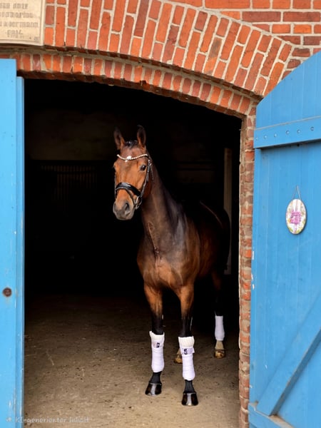 Quintana ist ein top Ausbildungspferd mit sehr guter Trabmechanik und der richtigen Arbeitseinstellung, sie ist jeden Tag mit Freunde bei der Arbeit. Spielerisch bereiten wir sie gerade auf L Lektionen vor.