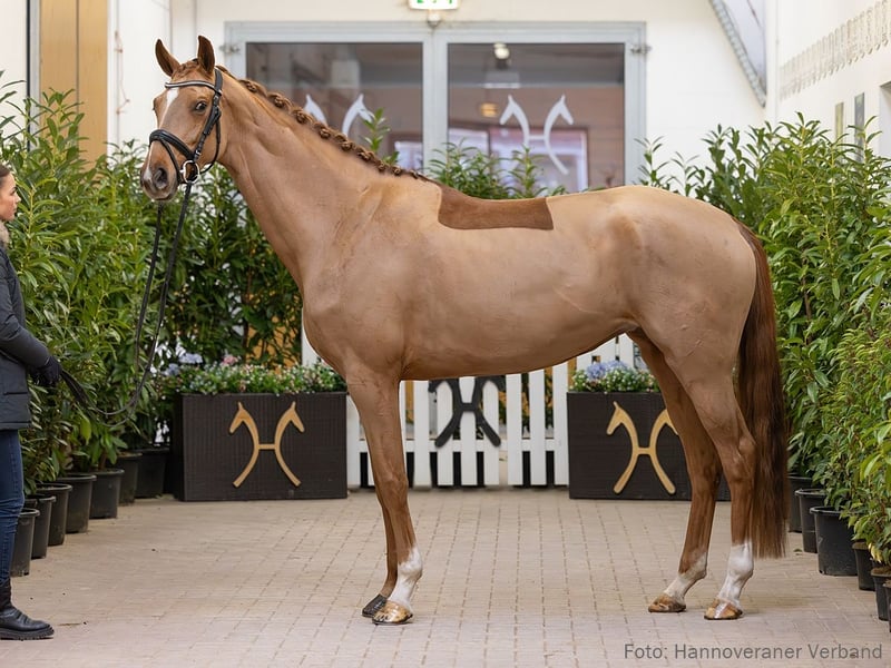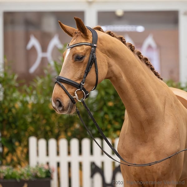 Conny überzeugt mit Auftritt, guten Reiteigenschaften und bester Bewegungsqualität. Ein herrliches Reitpferd für die zukünftige Dressurkarriere. Ihr Halbbruder Beau Figor v. Bon Coeur wurde 2018 gekört, und sieben weitere Geschwister sind erfolgreich in Aufbauprüfungen des Dressursports. Ihr Mutterstamm wird sportlich angeführt durch Hironimo v. Hochadel (DRE: S*** mit Marion Wiebusch). 1. Generation Aufbauprüfungen Dressur: Empathic v. Escamillo (DRE: L); Romance Dance v. Romanov Blue Hors (DRE: L). Besondere Sportergebnisse: Maximus ZR v. Morricone I (Championat f. Reitpferde 2025). gekörte Hengste: gek. Hengst Beau Figor 3 v. Bon Coeur (Verden 2018,HM 2018: 87.000 €). Auktionspferde: Biskaya 18 v. Bon Courage (FoVA 2020); Friesengeist v. For Romance I (FoVA 2017); Beatrix v. Benicio (FoVA 2013). Bes. Prämientöchter: HannPr Esther White v. Escolar; HannPr Fürstin Franzi v. Fürstenball (Herwart von der Decken-Schau Verden 2018). 2. Generation Sportpferde Dressur: Hironimo 3 v. Hochadel (DRE: S*** mit Marion Wiebusch); Fürst Doncolo v. Fürst Piccolo (DRE: S** mit Nicole Vater,VA 2012); Fox Village v. Fürst Nymphenburg (DRE: S** mit Mate Garai,Deutsches Amateur-Championat Dressur 2024); Sherlock Holmes A v. Sarkozy (DRE: S** mit Anja Rietbrock,Championat f. Reitpferde 2013); Fintendo v. Finest (DRE: S* mit Ines Fleischmann); LS-Dr Secret Kiss/Secret kiss v. San Amour I (DRE: S* mit Sascha Böhnke,Championat f. Reitpferde 2012); Heartbeat 7 v. Hotline (DRE: S* mit Alexandra Stich,Bundeschampionat f. Reitpferde 2011); gek. Hengst First Dance/First Dance 2 v. Florestan I (DRE: S* mit Steffen Frahm,Championat f. Reitpferde 2008,Verden 2006,HM 2006: 400.000 €); Don King 4 v. Don Vino (DRE: S* mit Sarah Haarlammert); Goldrose/Galilea 10 v. Grey Flanell (DRE: M** mit Nicola Hamacher,VA 2018); Vanessmae v. Vivaldi (DRE: M* mit Stefanie Hein,FoVA 2016); Fürst Karim v. Fürstenball (DRE: M* mit Hannah Charlotte Brenneke,FoVA 2014); Forever You v. Fürst Nymphenburg (DRE: M* mit Jessica Jasmin Weik); Scato 6 v. Sarkozy (DRE: M* mit Anja Kreitel-Lüschow); Dalena/Dubai Queen v. Donnerhall (DRE: M* mit Constanze Antonia Hinrichs,VA 2009). gekörte Hengste: gek. Hengst Fairlas v. Fair Deal (Vechta 2025); gek. Hengst Giacomo 216 v. Grey Flanell (Verden 2016,HM 2016); gek. Hengst Fernandel of Hillock v. Franziskus (Vechta 2017); gek. Hengst Firenze/von Florestan I v. Florestan I (Verden 2007,HM 2007: 60.000 €). Auktionspferde: Valentin v. Vaderland (FoVA 2022: 19.500 €); MDM Scatman v. Secret (VA 2022: 65.000 €); Fürstenhall v. Fürst Toto (FoVA 2019); Fürstin Fenja v. Fürsten-Look (VA 2019); Lemon Tree GS 3 v. Livaldon (FoVA 2017); Ronaldo 231 v. Romanov Blue Hors (VA 2016); Franklin v. Fürst Nymphenburg (VA 2015); Wolkentänzerin 2 v. Wolkentanz (FoVA 1999); StPrA Wonderfull/Wonderfull 4 v. Wanderbursch II (FoVA 1997). Bes. Prämientöchter: HannPr Senorita/Senorita GS v. Sir Donnerhall I; HannPr Darina v. Dancier (Herwart von der Decken-Schau Verden 2018); HannPr Tanita/Tanita 17 v. Totilas; StPr Weltina v. Wolkentanz (Herwart von der Decken-Schau Verden 2007); StPr Wina v. Wolkentanz; StPr Dorina v. Donnerhall; StPr Rubina v. Rubinstein I. 3. Generation Auktionspferde: StPr Andi/Allerfee v. Aarking (FoVA 1991). 5. Generation Sportpferde Dressur: Happy Day 51 v. Grenadier (DRE: M mit Mund,Heinrich). Sportpferde Springen: Bogner 3 v. Bergamon (SPR: 1,30 m mit Christin Mund). Aufbauprüfungen Springen: German Kleinigkeit v. Granturo (SPR: L); DISCO 24 v. Dirk (SPR: L). Auktionspferde: Willibald v. Weltissimo (VA 2007). Bes. Prämientöchter: StPr Doretta/Doretta v. Dinar. Mutter: Wolina Prämierung: 5xIa. ZL: 16/15 ZSP: Stationsprüfung Reitpferd - Trab 7,50 Galopp 7,50 Schritt 8,00 ø Durchschnitt Rittigkeit 6,00 / ø Durchschnitt Springen 7,00 Großmutter: Andi Prämierung: 1xIa. ZL: 19/17 ZSP: Feldprüfung Reitpferd - Trab 8,00 Galopp 8,00 Schritt 8,00 / Durchschnitt Rittigkeit 7,00 / Durchschnitt Springen 6,00 Das Pferd ist ein Verdener Auktionspferd und wird am 25.01.2026 online versteigert. Vom 12.01. bis zum 25.01. kann das Pferd jeden Tag beim öffentlichen Training besichtigt und ausprobiert werden. Das Startgebot bei der Versteigerung ist 8.000 Euro.