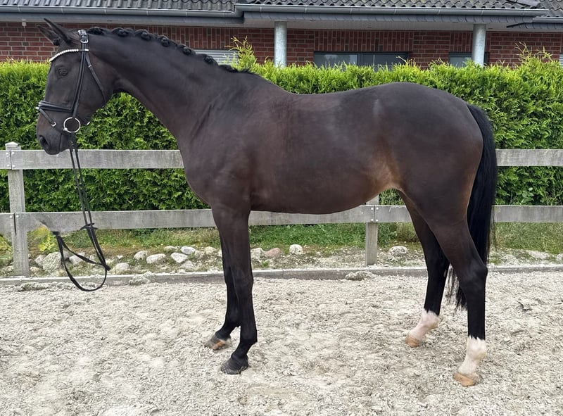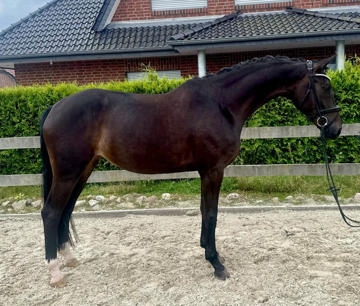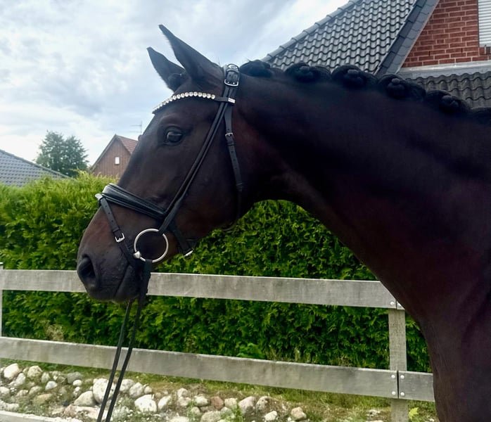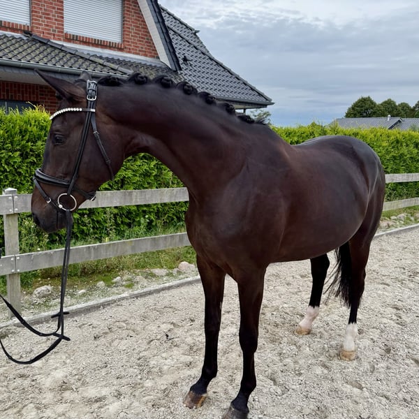 For sale is our 5-year-old mare Frieda from our family breeding. She is a mare of exceptional quality. Her talent for advanced dressage is already evident. In addition to her beautiful appearance, she has 3 really good basic gaits. The riding experience on Frieda is impressive. She is also very pleasant to handle. In the field and in other environments, she is fearless. A very good vet check is available. From her mother, several successful horses have already emerged, including David, who was auctioned for €150,000 in Verden. For more information, please feel free to call 01716916368.