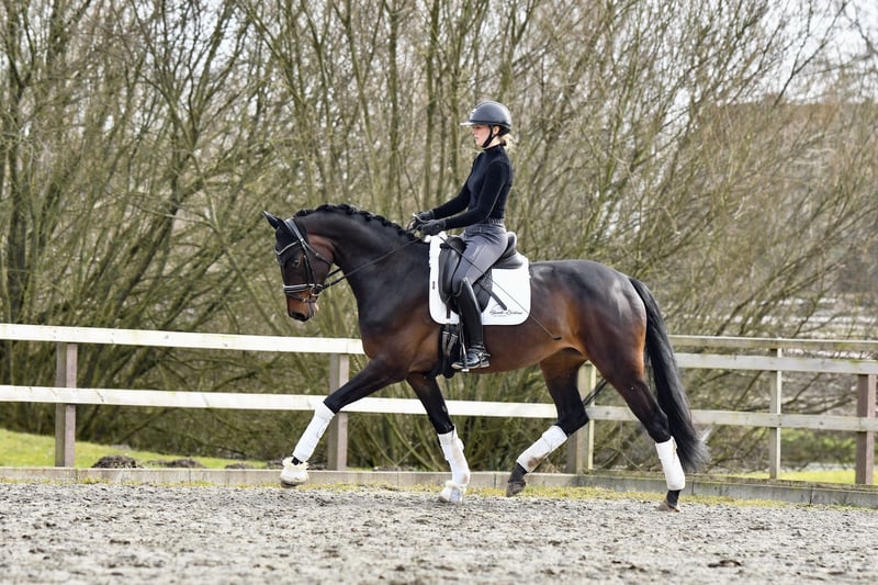Mit SO SWEET steht eine hochmoderne, talentierte und bildschöne Hannoveraner Stute in eleganter Aufmachung zum Verkauf, die mit ihren vier Jahren bisher alles richtig gemacht hat! Ihren allerersten Turnierstart (im Mai 2025) münzte sie auf Anhieb in einen Sieg in einer Dressurpferdeprüfung der Klasse A mit einer Wertnote von 8,2 um. Trotz Windböen und Regen zeigte sie sich vollkommen unbeeindruckt, nervenstark und arbeitswillig, was sich auch im täglichen Training bei uns widerspiegelt! Neben ihrer Rittigkeit und ausreichend Fleiß, verfügt sie über ein aktives Hinterbein und drei gute Grundgangarten, wobei der Schritt ganz besonders hervorzuheben ist! Noch in der Entwicklung stehend, bringt SO SWEET wirklich alles mit, was es für den Dressursport braucht! Für weitere Rückfragen oder einen Termin zum Anschauen und Probereiten melden Sie sich jederzeit gern - am liebsten direkt per WhatsApp oder telefonisch bei Luisa Erichsen unter +49 174 2491719.