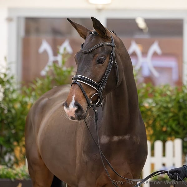 Joanna ist eine Dressurofferte für den sofortigen Einsatz. Sie begeistert mit elastischem Bewegungsablauf und feiner Reaktion auf den Reiter. Sie ist mit der Hannoveraner Prämienanwartschaft ausgezeichnet und legte ihre Zuchtstutenprüfung erfolgreich mit der Wertnote 8,0 für den Trab ab. Großmutter StPr Hanna stellt acht Nachkommen im Sport, u. a. Balerion v. Bonifatius (DRE: S erfolgreich mit Hanna Schelhas). Zuchtprämie: 1xIa. Leistungsprüfung: Feldprüfung Reitpferd - Trab 8,00 Galopp 7,50 Schritt 7,00 / Durchschnitt Rittigkeit 8,25 / Durchschnitt Springen 0,00 Prämie: HannPrA Vet+ 1. Generation Auktionspferde: Fabergé v. Finnigan (VA 2023); Feeling du Hans/Fiorello v. Finnigan (VA 2022); Fürst Hohenstein 4 v. Fürstenball (VA 2021); Fürst Lehmann v. Fürstenball (VA 2020); HannPrA Fürstin Lara v. Fürstenball (VA 2020); Fürstenglanz 8 v. Fürstenball (VA 2017: 85.000 €). Bes. Prämientöchter: HannPrA Viva Viana v. Viva Gold (Herwart von der Decken-Schau Verden 2025); HannPrA Vanity Fair/Vanity Fair 31 v. Vitalis; HannPr Vanya/Vanya 4 v. Vitalis. 2. Generation Sportpferde Dressur: Balerion v. Bonifatius (DRE: S* mit Hanna Schelhas); Bell Angelo v. Belissimo M (DRE: S* mit Caroline GARREN,VA 2012); Balian 3 v. Belissimo M (DRE: S* mit Hanna Schelhas); StPrA Delacuna v. Dimaggio (DRE: M* mit Jasmin Claudia Moghaddam,VA 2011). Auktionspferde: Baily/Baily 61 v. Buckingham (VA 2021); Danbury 5 v. Don Index (VA 2019); HannPr Samira/Sunset Affair v. Spörcken (VA 2019); HannPrA Safira/Safira 66 v. Spörcken (VA 2017,Herwart von der Decken-Schau Verden 2016); Ballentines 16 v. Belissimo M (VA 2016); Foursquare v. Fürst Nymphenburg (VA 2015); StPrA Rascalina/Rascalina 4 v. Rascalino (VA 2010); StPr Wildrose/Wildrose 93 v. Weltruhm (VA 2005). Bes. Prämientöchter: HannPrA Dr. Frederike v. Dr. Watson; StPr Lara v. Lehmann (Herwart von der Decken-Schau Verden 2011); StPr Donna Daniella/Donna Daniella v. Don Frederico. 3. Generation Bes. Prämientöchter: StPr Hanna v. Hohenstein. 4. Generation Sportpferde Dressur: Tailormade Succi/Sadya BS v. Sir Donnerhall I (DRE: S*** mit Daniela Ben Said); Denver 212 v. Del Piero (DRE: S*** mit Tessa Frank); Delano 103 v. Dressage Royal (DRE: S** mit Steffen Henjes); Deluxe 9 v. Del Piero (DRE: S* mit Udo Löffler); Fiete S v. Fabregas (DRE: M* mit Mia Geyer); Davvero Piero v. Del Piero (DRE: M* mit Daniel Hoffstadt); Chantal/Grandygirl v. Cavalier (DRE: M mit Jentzsch,Jan,SPR: M mit Jentzsch,Jan). Sportpferde Springen: Wolkenzauber 6 v. Wolkenstein II (SPR: int. 1,45 m mit Christian Heineking); Chantal/Grandygirl v. Cavalier (DRE: M mit Jentzsch,Jan,SPR: M mit Jentzsch,Jan); gek. Hengst Wolkenzug/v.Wolkenstein v. Wolkenstein II (SPR: M mit Sontheim,Holger,Gelände: L,Marbach/L.,HM 1998); Nadir 42 v. Novize (SPR: M mit PELTZER,RENATE,VA 1986). Aufbauprüfungen Dressur: Quality Colour v. Quasar de Charry (DRE: L). Aufbauprüfungen Springen: gek. Hengst Lonsdale/Lonsdale D.H. v. Lemon Tree (SPR: L,Verden 1992,HM 1992). Auktionspferde: StPr Laura M/Laura 128 v. Lauries Crusador (VA 1998). Bes. Prämientöchter: StPr Davenda S v. Del Piero; StPr Laura S II v. Lauries Crusador; StPr Ravenna v. Rotspon; StPrA Windspiel/Windspiel 219 v. Wolkenstein II; StPr La Luna/La Luna 17 v. Lemon Park. 5. Generation Sportpferde Dressur: Cool Man S v. Carprilli (DRE: M mit Katja-Anke Herzog); Liberthy H v. Lemon Park (DRE: M mit Wahlers,Eckhard,VA 1997); Amethyst 64 v. Argentan (DRE: M mit Theilig,Anja); Cabochon 3 v. Carprilli (DRE: M mit Reinbott,Ralf); Argentino 8 v. Argentan (DRE: M mit ISBRUCH,UWE). Sportpferde Springen: Dandy 175 v. Don Carlos (SPR: S mit Hahn,Volker); Willy B v. Wilhelm Tell I (SPR: M mit SCHAEFER,ROLF). Aufbauprüfungen Dressur: Alcazar/Alcazar 21 v. Argentan (DRE: M mit MUENSTERMANN,HOLGER). Auktionspferde: Wizzard v. Wittelsbach (VA 1990). Bes. Prämientöchter: StPr Agentin v. Argentan; StPr Argentera v. Argentan (Louis Wiegels-Schau Dobrock 1975). Mutter: Lara Prämierung: 3xIa. ZL: 11/9 ZSP: Feldprüfung Reitpferd - Trab 7,00 Galopp 7,50 Schritt 8,00 / Durchschnitt Rittigkeit 7,00 / Durchschnitt Springen 6,25 Großmutter: Hanna Prämierung: 1xIa. ZL: 17/11 ZSP: Feldprüfung Reitpferd - Trab 8,50 Galopp 8,00 Schritt 7,50 / Durchschnitt Rittigkeit 8,00 / Durchschnitt Springen 7,00 Das Pferd ist ein Verdener Auktionspferd und wird am 25.01.2026 online versteigert. Vom 12.01. bis zum 25.01. kann das Pferd jeden Tag beim öffentlichen Training besichtigt und ausprobiert werden. Das Startgebot bei der Versteigerung ist 8.000 Euro.