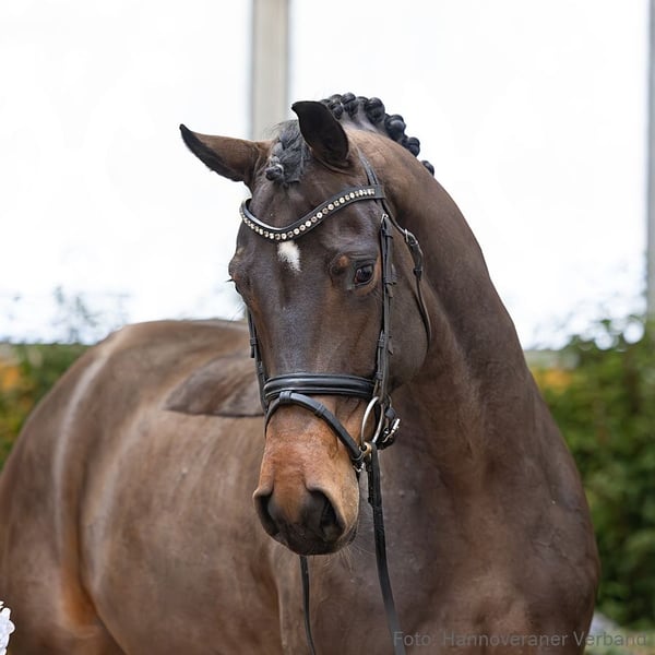 Das Pferd ist ein Verdener Auktionspferd und wird am 18.04.2026 onlive versteigert. Vom 6.04. bis zum 18.04. kann das Pferd jeden Tag beim öffentlichen Training besichtigt und ausprobiert werden. Das Startgebot bei der Versteigerung ist 8.000 Euro. Valerie kommt dem Schönheitsideal eines Dressurpferdes sehr nahe. Sie überzeugt mit großem Talent und exzellenter Rittigkeit. Ihre Mutter Hann.Pr. Davina L nahm erfolgreich an der Herwart von der Decken-Schau 2021 teil. Großmutter Valentina L ist Mutter des gekörten Hengstes Benji v. Benicio. Aus der Linie Christin stammen sieben erfolgreiche Turnierpferde, darunter Viper v. Valentino, Carlucci v. Contendro I, Feeling v. Fielmann und Living Colours v. Londonderry. Angeführt wird der Stamm vom gekörten Hengst Weltpoet v. Weltmeyer (Grand Prix). Zuchtname: Valerie 2. Generation Aufbauprüfungen Dressur: HannPr Fürstin Felice L v. Fürsten-Look (DRE: L). gekörte Hengste: gek. Hengst Benji/v. Benicio - Valent v. Benicio (Verden 2023,HM 2023: 72.000 €,Prä.Dre. Körung Verden 2023). Auktionspferde: Fiadora v. Fürsten-Look (VA 2022: 218.000 €,Herwart von der Decken-Schau Verden 2021). Bes. Prämientöchter: HannPrA Fabiola v. Freigeist; HannPrA Fiore di Larice v. Fürsten-Look (Herwart von der Decken-Schau Verden 2020); HannPr Davina L/Diandra v. Diatendro. 3. Generation Sportpferde Dressur: Black Devil 34 v. Balou du Rouet (DRE: S** mit Andrea Timpe,VA 2016); Carlucci 15 v. Contendro I (DRE: S*** mit Belinda Trussell); Living Colours 2 v. Londonderry (DRE: S*** mit Rena Fraikin,VA 2004); Feeling 38 v. Fielmann (DRE: S** mit Ken Juel Andreassen); Viper 15 v. Valentino (DRE: S* mit Julian Meckel,FoVA 2007,VA 2009); Bain's Cape Mountain v. Balou du Rouet (DRE: M* mit Natalie Heidmeyer,SPR: 1,30 m mit Natalie Heidmeyer). Sportpferde Springen: HannPrA Dakira de Luxe/Dakira Deluxe v. Diarado (SPR: 1,40 m mit Mia Marie Rypholz); Bain's Cape Mountain v. Balou du Rouet (DRE: M* mit Natalie Heidmeyer,SPR: 1,30 m mit Natalie Heidmeyer). Auktionspferde: Calanera v. Chaloubino PS (FoVA 2024); HannPrA Vet+ Diabella/Diabella 13 v. Diro (VA 2025,VA 2026,Herwart von der Decken-Schau Verden 2024); Del Sol v. Donier (VA 2022); Di Maestro v. Da Costa (VA 2022); Vanderbilt v. Vilancio (VA 2021); Beppino v. Balou du Rouet (VA 2015,FoVA 2012: 20.000 €); Lollipop/Lollypop 56 v. Londonderry (VA 2006). Bes. Prämientöchter: HannPr Bella Blue v. Balou du Rouet (Herwart von der Decken-Schau Verden 2018); StPr Cool Lady v. Contendro I; StPr Funny Hill v. Fielmann. 4. Generation Sportpferde Dressur: Fürst Dantino v. Fürst Grandios (DRE: Grand Prix mit Claire-Louise Averkorn,Dressurprüfung Kl. S*** - Grand Prix de Dressage 2025,Dressurprüfung Kl. S*** - Grand Prix Kür - 2025,Dressurprüfung Kl. S*** - Grand Prix de Dressage 2024); Kaiserhit L v. Kaiserkult (DRE: M* mit Annina Lühs). Sportpferde Springen: Raphaelo 26 v. Raphael (SPR: 1,30 m mit Simone Weimer); gek. Hengst Reccio L/Rodolfo v. Raphael (SPR: M mit Kools,Jasper,Verden 2000). Aufbauprüfungen Dressur: Baloutino L v. Balou Peggio (DRE: M mit Claire-Louise Averkorn); HannPr Fearless Fame v. Fürst Grandios (DRE: L). gekörte Hengste: gek. Hengst Gasparo 18 v. Graf Top (Verden 2002,HM 2002). Auktionspferde: Vet+ Sakari/Sakari 9 v. Sezuan's Donnerhall (VA 2026); Beautiful South v. Balou Peggio (FoVA 2017,VA 2021). Bes. Prämientöchter: StPr Lotta v. Linton. 5. Generation Sportpferde Dressur: Fire Star 3 v. Falkland (DRE: S mit Gießelmann,Jan-Dirk,DM-Wert.Jun.Dress.Kl.M 2003,DM-Wert.Jun.Dress.Kl.M 2002). Sportpferde Springen: Carikato v. Carridam (SPR: int. 1,35 m mit Torben Köhlbrandt); Samira/Samira 363 v. Stolzenberg (SPR: 1,30 m mit Anna Lena Boy). Aufbauprüfungen Springen: Parcival S v. Perigueux (SPR: L). Auktionspferde: Drambui v. Drosselklang II (VA 2005). Bes. Prämientöchter: HannPr Di Seta v. Destano; StPr Face of light v. Falkland. Mutter: Davina L Prämierung: 2xIa. ZL: 6/4 ZSP: Feldprüfung Reitpferd - Trab 8,50 Galopp 7,50 Schritt 7,00 / Durchschnitt Rittigkeit 9,00 / Durchschnitt Springen 6,25 Großmutter: Valentina L Prämierung: 1xIa. ZL: 10/10