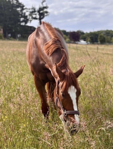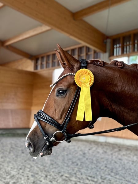 A name that says it all: "Dolce Vita" – this charming chestnut mare embodies pure lightness, joy of life, and rideability. The four-year-old daughter of Don Romance (Dante Weltino OLD × Sir Donnerhall I) out of a St. Pr. mare by Fürst Romancier × San Amour I impresses with her elegant appearance, above-average movement quality, and a particularly pleasant temperament. Known as "Dolci" in the stable, she has been trained with patience and sensitivity. She convinces not only with her natural tendency to move uphill and her active hind leg but also with a remarkable inner calm and eagerness to learn. She already demonstrated her class during her first competitions: with an overall score of 8.6, she won a dressage young horse test 🥇 – an impressive testament to her potential. Standing approximately 1.72 meters at the withers, "Dolce Vita" has everything one could wish for a successful future in dressage: type, talent, and attitude. We are looking for a home for this highly talented State Premium candidate that will support her further development and training on her way into the sport. A mare that excites with her expression, her heart, and her quality – a true future star for the arena. 📍 Location: 49356 Diepholz 📞 +49 151 70006767 Dressage Training Larissa John @larissajohn_dressage