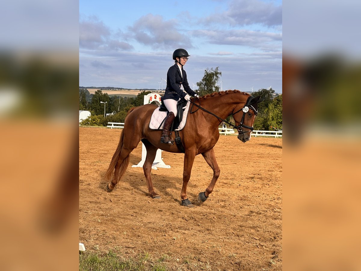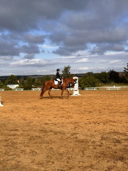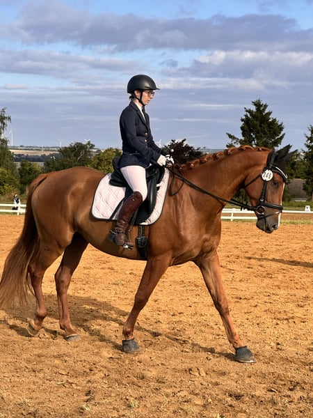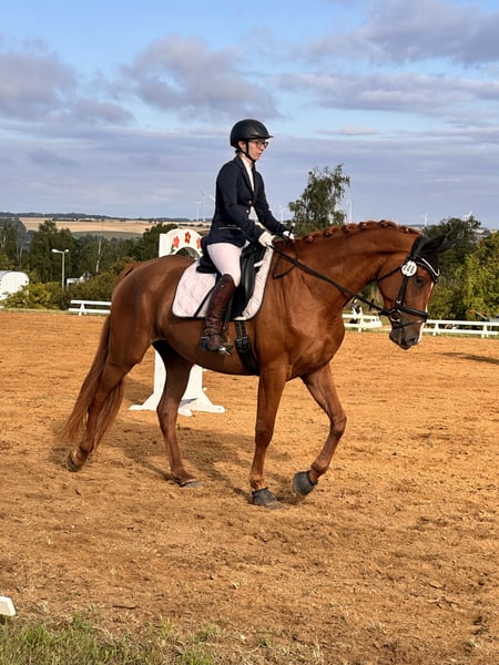 **For Sale: Beautiful Hanoverian Mare** We offer a talented Hanoverian mare for sale. **Details:** - **Breed:** Hanoverian - **Gender:** Mare - **Year of Birth:** 2021 - **Color:** Chestnut - **Height:** 173 cm - **Suitability:** Dressage This young mare impresses with her elegant expression and excellent movements. She already shows a lot of potential in dressage and has a pleasant, willing disposition. She is well-mannered, well-trained, and has already gained some experience under saddle. Ideal for ambitious riders looking for a talented horse for the future. If you are interested or need more information, please feel free to contact me. Viewings can be arranged by appointment. We look forward to hearing from you!