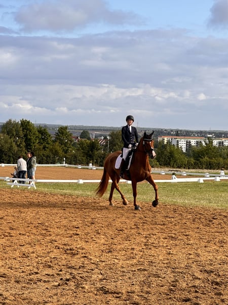 ** V-BOMBE ** Wir bieten eine talentierte Hannoveraner Stute von VPLUS zum Verkauf an. Hannoveraner Stute Geburtsjahr 2021 Farbe: Fuchs Stockmaß: 175 cm Eignung: Dressur/Freizeit/Gelände "Plussi" überzeugt durch Ausdruck und ihren hervorragenden Bewegungen. Sie zeigt bereits viel Potenzial im Dressursport und hat ein angenehmes, lernwilliges Wesen. Sie ist brav im Umgang, gut erzogen und hat bereits erste Erfahrungen auf dem Turnier (Reitpferdeprüfung) gesammelt, 2. Reserve. Ideal für ambitionierte Reiter, die ein talentiertes Pferd für die Zukunft suchen. Zubehör kann auf Wunsch und gegen Aufpreis mitgegeben werden. Bei Interesse freuen wir uns auf Ihren Anruf, um weitere Details zu besprechen und einen Besichtigungstermin zu vereinbaren. Anfragen bitte nur tel. unter 0341/98995223 Mo. - So. von 09:00 - 20:00 Uhr Probereiten : Kostet bei uns 30€ pro Pferd (max. 2 Reiter). Für Terminbestätigung vollständigen Namen und Adresse senden. Achtung an Feiertagen kostet der Proberitt 50€. Sollte die Absage nicht 24 Std. vor dem Termin erfolgen, wird dieser in Rechnung gestellt. Vorführen durch unsere Bereiter, ohne Probereiten, Bodenarbeit etc. 25 Euro pro Pferd. Ankaufsuntersuchungen, egal in welchem Umfang, können Sie gerne von Ihrem oder unserem Tierarzt vornehmen lassen. Beim Transport ins neue Zuhause helfen wir auch sehr gerne. www.deutsche-pferde-boerse.de Weitere tolle Pferde befinden sich in unserem Verkaufsstall. Einige unserer Pferde befinden sich auch hier im Verkaufsportal und auf unserer Homepage. Stockmaß Angaben sind Schätzungen des Verkäufers und nicht genau nachgemessen. Dies sind keine zugesicherten Eigenschaften, es handelt sich lediglich um subjektive Eindrücke des Verkäufers.