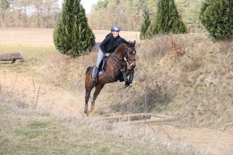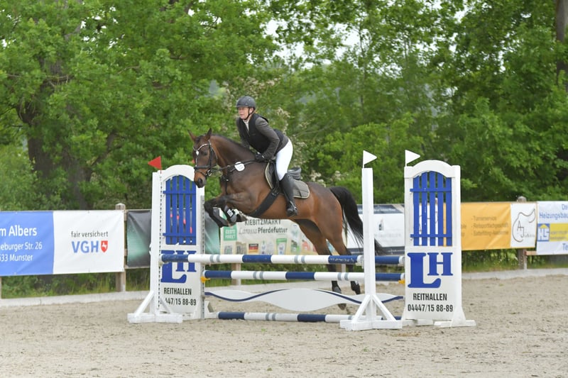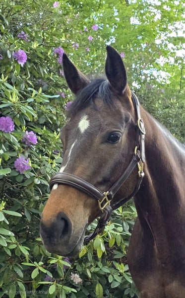 Alli ist eine talentierte 5 jährige Stute aus erfolgreicher, privater Zucht. Bei der täglichen Arbeit ist sie stets motiviert und möchte alles richtig machen. Sie ist in der dressurmäßigen Arbeit fein in der Anlehnung und hat genügend Schwung. Zusätzlich ist sie mit 3 guten Grundgangarten ausgestattet. Im Springparcours und auf den Geländeplätzen zeigt sie sich sehr geschickt mit guter Marnier, Vermögen und äußerst flinken Beinen. Hier zusätzlich mit viel Go. Auf den Turnieren konnte sie mit Ehrgeiz und einer großen Portion Mut überzeugen. Mit mir als Amateur konnte sie sich in Gewöhnungsspringen, Springpferde- und Geländepferdeprüfungen der Kl A* platzieren und zeigt deutlich Potenzial für mehr. Ein hoffnungsvolles Nachwuchspferd für die Vielseitigkeit. Ausreiten, ob alleine oder in der Gruppe, ist völlig problemlos. Wir wünschen uns für Alli ein liebevolles 5 Sterne zu Hause, wo sie es gut hat ,aber auch weiter gefordert wird. Sie möchte arbeiten und am liebsten jeden Tag ein anderes Programm haben. Wir können sie uns durchaus auch als Umsteigerpferd für ambitionierte Junioren vorstellen. Letztes Jahr wurden vor dem Anreiten Röntgenbilder inkl. Wirbelsäule angefertigt. Ohne Befund. Die Bilder können gerne eingesehen werden. Bei Interesse gerne per WhatsApp schreiben. Anrufen bitte erst nach 18 Uhr