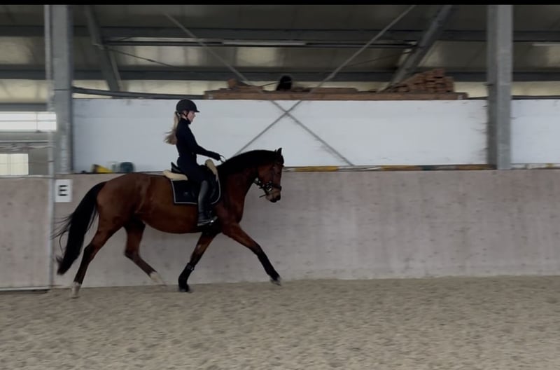 Zum Verkauf steht eine wunderschöne braune Hannoveraner Stute, geboren 2020, mit einem aktuellen Stockmaß von ca. 163 cm. Sie überzeugt durch ihre elegante Erscheinung, korrekte Statur und einer sehr guten Bewegungsqualität. Die Stute befindet sich in einer soliden altersgerechten Ausbildung und zeigt sich unter dem Reiter stets motiviert und lernwillig. Besonders im Dressurbereich bringt sie viel Potenzial, hier wünschen wir uns einen Reiter, der sie weiter fördert und die nötige Routine vermitteln kann. Zusätzlich hat sie bereits erste Sprünge unter dem Reiter mit viel Vermögen und Freude absolviert, was ihre Vielseitigkeit unterstreicht. Püppi ist gesund und bereits getüvt inkl. Röntgen ohne Befund. Ein ideales Pferd für ambitionierte Reiter, die eine zuverlässige und fördernde Ausbildung fortsetzen möchten. Bei ernsthaftem Interesse stehe ich gerne für weitere Informationen oder zur Vereinbarung eines Besichtigungstermins zur Verfügung.