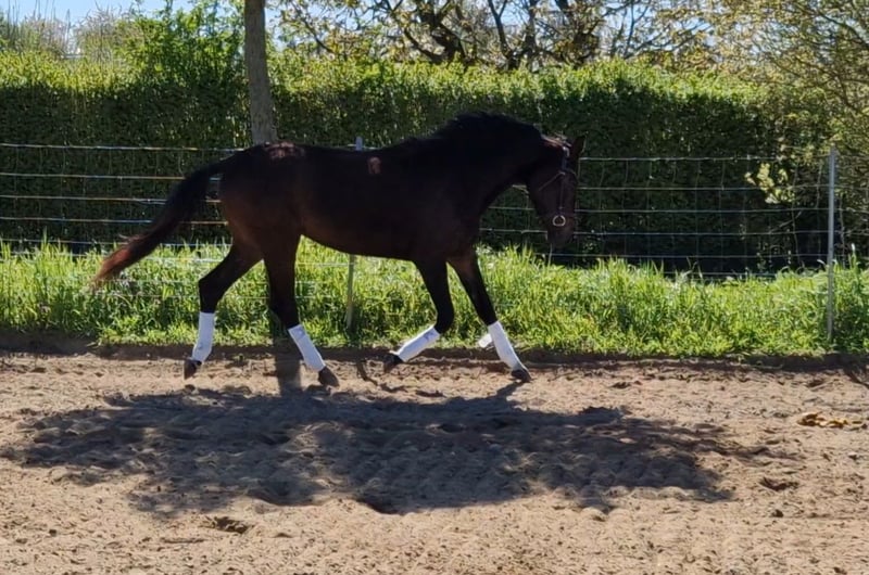 3-year-old Hanoverian mare out of a Hohenstein x world fame mare and sire Vivaldos. Raw. Currently about 1.60 tall and is growing. Docile, playful and determined. The pedigree includes Krack C, Desperados, Caprimond and Weltmyer. Information about the mother strain: In the dam line, the performance-tested and strong Trakehner blood. Combined with world fame and world meyer.