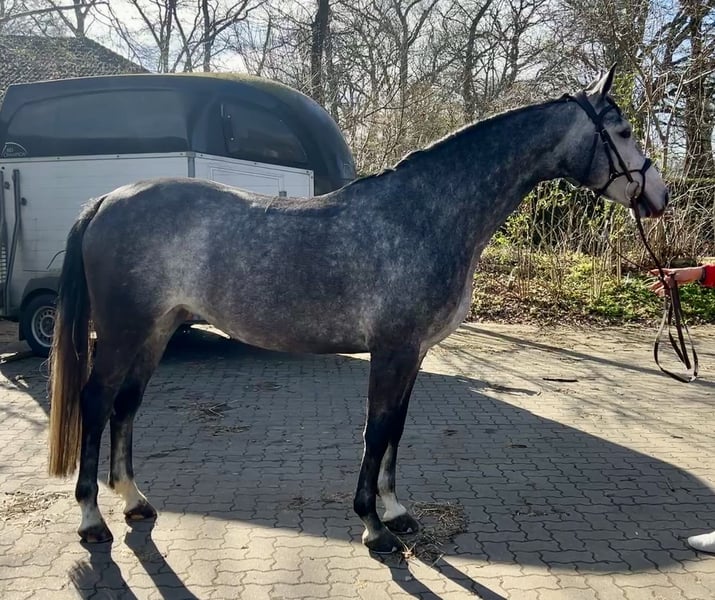 Zum Verkauf steht unsere 6 jährige Stute „Cataleya“ Sie stammt ab von Chacoon Blue x Escudo I und misst 163cm, deckt dabei aber sehr gut ab. Cataleya ist nicht nur bildhübsch sondern rundum ein Traumpferd. Sie war letztes Jahr mit Amateur nahezu jede Runde fehlerfrei und platziert bis Springpferde A**. Im Parcours zeigt sie sich stets unerschrocken, vorsichtig und mit viel Übersicht. Auch von Jugendlichen zu bedienen. Natürlich ist sie Schmiede- und Verladefromm. Ausreiten kennt sie allein sowie in der Gruppe. Im Umgang ist sie super anhänglich und freundlich. Ein Tüv aus 2024 ist vorhanden und kann verschickt werden. Für weitere Videos oder bei Fragen gerne melden. Verkauf nur wegen eigener Nachzucht in allerbeste Hände.