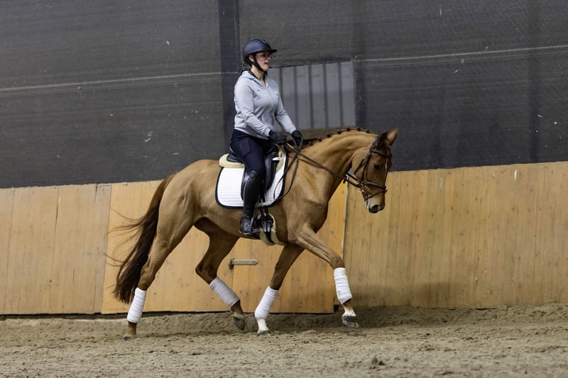 For sale from a breeder, Dahlia CD is a modern, blood-type, double-licensed chestnut mare born on February 14, 2020, of exceptional quality. Dahlia CD impresses as an elegant, movement-rich, and very rideable mare with a pleasant temperament and the right attitude towards work. She consistently presents herself as gentle, attentive, and intelligent. She is still physically developing and not yet fully mature. One of her most remarkable traits is her friendly, affectionate, and curious nature. She is completely free of bad habits such as bucking or rearing. The mare was gently backed in 2024 and has already achieved ribbons in dressage and jumping competitions at the A* and A** levels. She is currently working on L-level dressage movements. Thanks to her versatility, she performs very well across all disciplines and would also be an excellent candidate for eventing. With her character and attitude, Dahlia CD will be an ideal, reliable, and honest sport partner in the future. 📞 Please contact us for more information or to arrange a viewing. Pedigree: Sire: Dohnanyi – Winner of the Hanoverian Young Horse Championship for 3-year-old stallions in Verden – Bronze medalist at the 2017 Bundeschampionat in Warendorf Dam: Fiorella CD – Strongly double-licensed – Sensitive nature with high performance and collection willingness https://www.horsetelex.de/horses/pedigree/2130499/dahlia-cd From the successful mare line, numerous auction foals, successful sport horses, and several licensed stallions in jumping and dressage, up to international level, have been bred.