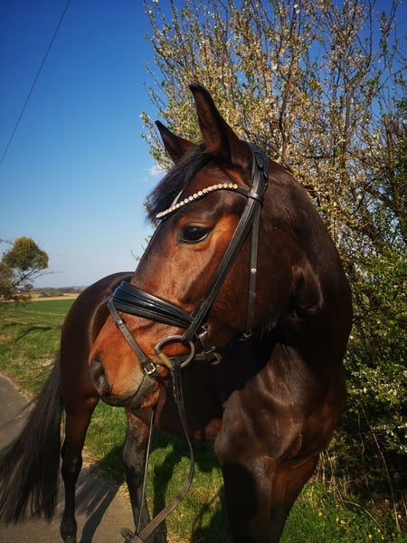Zum Verkauf steht eine braune 6-jährige Hannoveraner Stute von Follow me x Sandro Hit. Fia Bella „Effi“ hat ein Stockmaß von 1,68 m, und ist für jeden Spaß zu haben. Sie fällt einem alleine schon aufgrund ihrer Schönheit ins Auge. Wir wünschen uns für sie einen absoluten Bestplatz, wo sie als vollwertiges Familienmitglied geschätzt und dementsprechend auch gut behandelt wird. Wir wünschen uns für sie ein Zuhause, in dem sie einem ambitionierten Freizeitreiter oder Anfänger Freude bereiten kann. Sie freut sich über Ausritte, egal ob alleine oder in der Gruppe. Ob Halle, Reitplatz oder Gelände, sie geht unerschrocken in allen drei GGA. Aufgrund ihrer guten Abstammung könnte ich sie mir ebenfalls für die Zucht vorstellen. Sie hat bereits 4-jährig ein Fohlen bekommen und war eine tolle Mutter. Das Aufnehmen und Abfohlen hat problemlos funktioniert. Ihre Stutenprüfung hat sie erfolgreich mit der Auszeichnung des A1-Preises absolviert. Sie ist im Umgang ein absoluter Schatz und völlig unkompliziert, genau wie beim Verladen. Effi ist regelmäßig entwurmt und geimpft. Sie ist sehr verträglich mit anderen Pferden, da sie eher Rang niedig ist. Röntgenbilder von 03/24 liegen vor. Da Effi koppt, wird sie weit unter Wert angeboten. Es ist kein Notverkauf! Video und weitere Infos bei ernsthaftem Interesse.