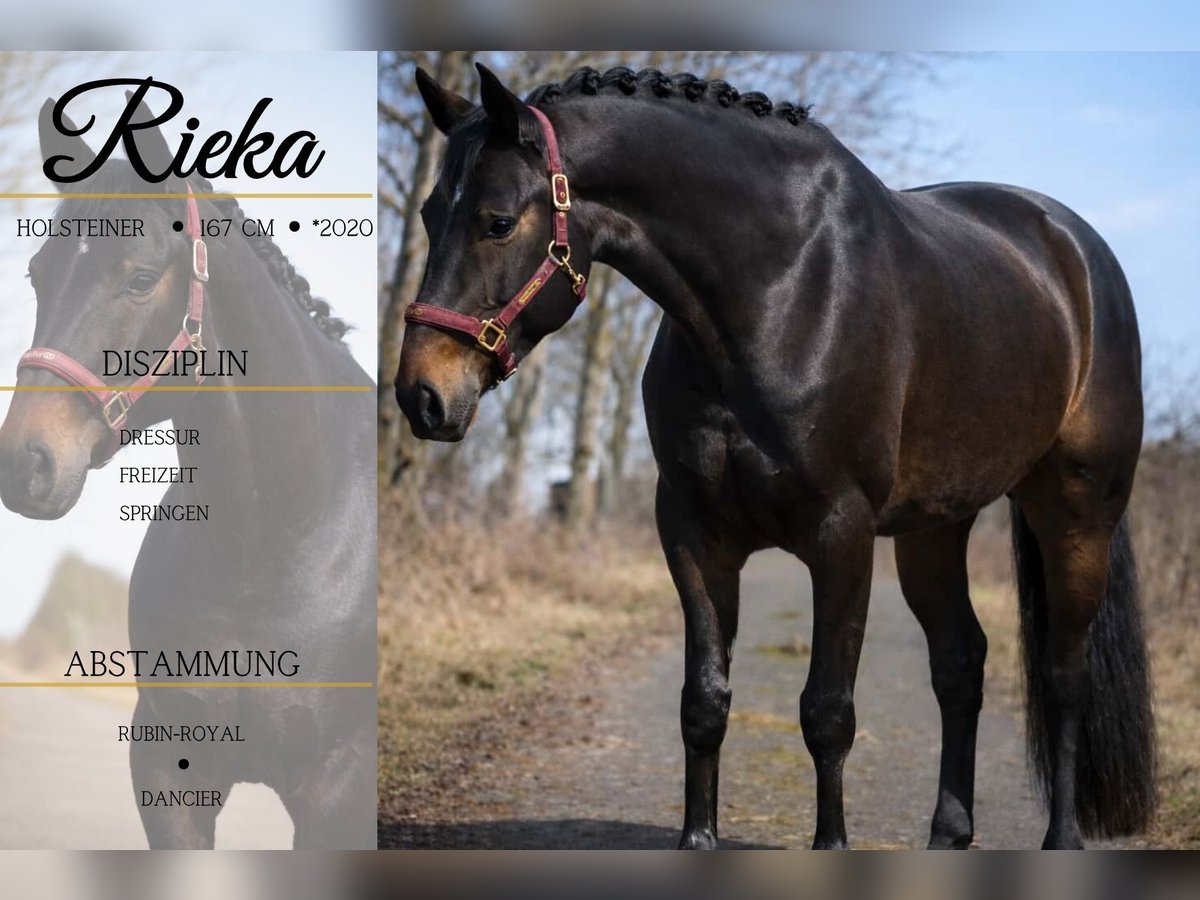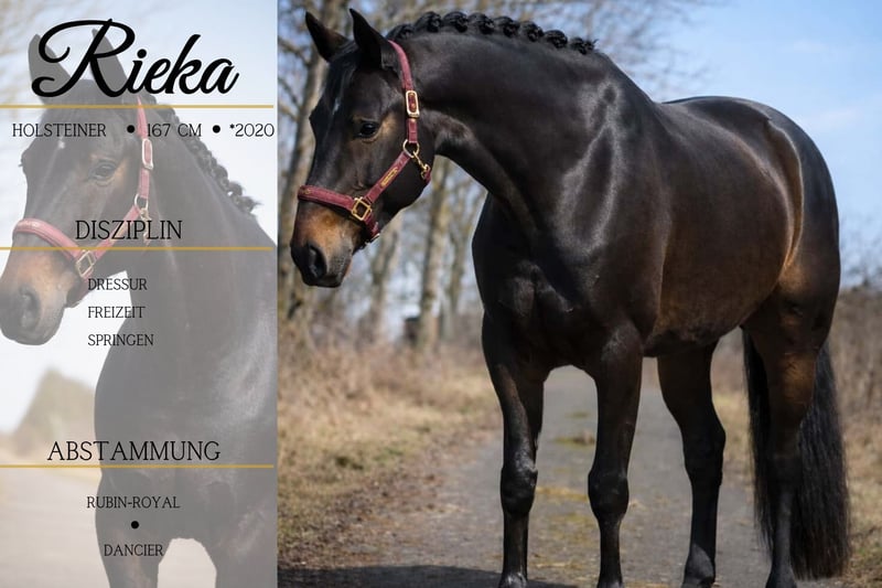 Rieka is a 6-year-old Hanoverian mare, approximately 16.1 hh, by Rubin Royal out of Rubinstein, Grundstein II x Dancier, De Niro, Donnerhall. Rieka is a beautiful, expressive mare with three very good gaits. She has been trained in a versatile manner and brings a lot of joy to her rider. She is easy to ride and moves effortlessly through the bit. She is well-behaved both alone and in a group when hacking out, and is familiar with water and unfamiliar environments. She is also very suitable for young riders. A horse that combines high sporting quality with a clear head. Eye-catching in every respect, with an excellent character. Also uncomplicated and affectionate in handling. Horse Dealership Dederichs – Your Partner for Horse Purchase Contact & Availability: Inquiries please exclusively by phone at 0173/9792139 Monday – Friday: 09:00 AM – 6:00 PM Saturday: 09:00 AM – 3:00 PM Sunday: Closed Follow us on social media! Experience our daily work with the sale horses on Instagram, TikTok & Facebook under Pferdehandlung Dederichs Discount: Receive 5% – 10% off when taking your new dream horse immediately Trial Riding & Demonstration: • Trial ride: €40 per horse (up to 2 riders), amount credited upon purchase • Public holidays: Trial ride €50 • Demonstration by our trainers: €30 per horse (pre-riding, ground work, etc.) Pre-Purchase Examination & Transport: • Many of our horses already have an AKU (pre-purchase exam) • You are welcome to bring your own veterinarian • We can arrange an examination for you • We also gladly assist with transport to your new home Other Sale Horses: We have additional horses available in our stable that are not yet listed online. If your dream horse is not yet among them, do not hesitate to contact us. Important Notes: • Estimated height measurements are approximate and not precisely measured • All descriptions are subjective assessments by the seller and do not constitute guaranteed characteristics