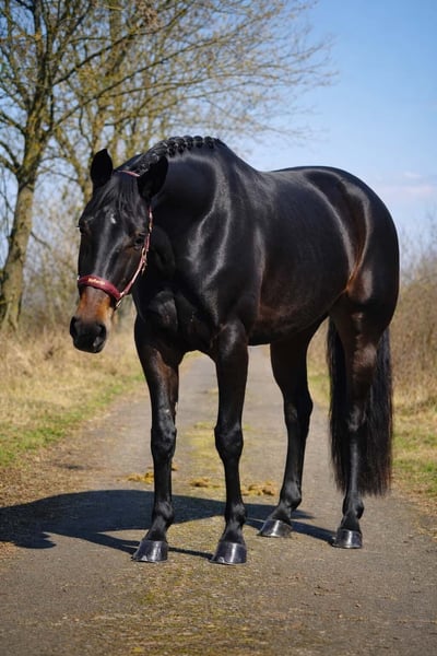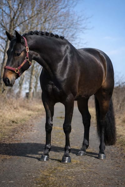 Rieka to 6-letnia klacz Hannoveraner o wzroście około 1,68 m, po Rubin Royal, Rubinstein, Grundstein II oraz Dancier, De Niro, Donnerhall. *Rieka* jest piękną, wyrazistą klaczą z bardzo dobrymi cechami skokowymi. Jej wszechstronne wykształcenie sprawia, że daje wiele radości z jazdy. Jest lekka w chodzie i bardzo łatwo prowadzi się ją przez łęk. Potrafi spokojnie i bez problemu iść samodzielnie oraz w grupie na teren, zna wodę i nieznane otoczenie. Doskonale nadaje się również dla młodych jeźdźców. To koń, który łączy sportową jakość z jasnym umysłem. Przyciąga uwagę pod każdym względem i ma świetny charakter. W kontaktach jest również łatwa w obsłudze i przyjazna. Pferdehandlung Dederichs – Twój partner w zakupie konia Kontakt i dostępność: Prosimy o zapytania wyłącznie telefonicznie pod numer 0173/9792139 Poniedziałek – piątek: 09:00 – 18:00 Sobota: 09:00 – 15:00 Niedziela: dzień wolny Śledź nas w mediach społecznościowych! Poznaj naszą codzienność z końmi na sprzedaż na Instagramie, TikToku i Facebooku pod nazwą Pferdehandlung Dederichs Rabat: Przy natychmiastowym odbiorze swojego wymarzonego konia otrzymujesz rabat od 5% do 10% Próba jazdy i prezentacja: • Próba jazdy: 40 € za konia (max. 2 jeźdźców), kwota zostanie odliczona od ceny zakupu • Święta: jazda próbna 50 € • Prezentacja przez naszych jeźdźców: 30 € za konia (przygotowanie, praca na ziemi itp.) Badanie przedzakupowe i transport: • Wiele naszych koni posiada już badanie AKU • Oczywiście możesz zabrać własnego weterynarza • Chętnie zorganizujemy badanie • Z przyjemnością pomożemy również w transporcie do nowego domu Więcej koni na sprzedaż: W naszym stajni dostępne są kolejne konie na sprzedaż, które jeszcze nie są online. Jeśli Twoje wymarzone konie jeszcze nie ma w ofercie, nie wahaj się z nami skontaktować. Ważne informacje: • Szacunkowe wzrosty nie są dokładnie zmierzone • Wszystkie opisy są subiektywnymi ocenami sprzedającego i nie stanowią gwarancji cech konia