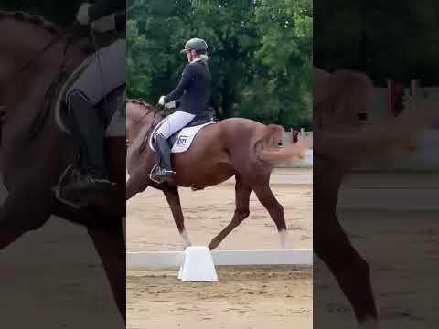 Susi is very clever. She was able to change her series within 6 weeks and is already performing many exercises that she doesn't even have to do at her young age of 6 years. In 3 starts in Dressage Horse M, she was placed 3 times. She was carefully introduced to competitions starting at the age of 5. She has three consistently good basic gaits, but she is not a "show-off." She is safe in the terrain and very sociable with other horses. She has been ridden exclusively by amateurs and has always been part of a family environment. Susi comes directly from the breeder, where she was raised in a paddock with regular mineral feed. She was only gently and minimally ridden at the ages of 3 and 4. Current X-rays are available. The Hanoverian Vet+ premium has been applied for. She comes from the direct dam line of Danone I/II. In the Hanoverian Dressage Horse Breeding program, she already has "2 stars." https://www.horsetelex.de/horses/pedigree/2270424/sezuan-s-susi-girl