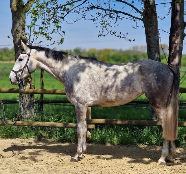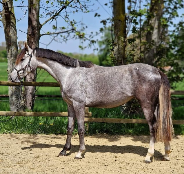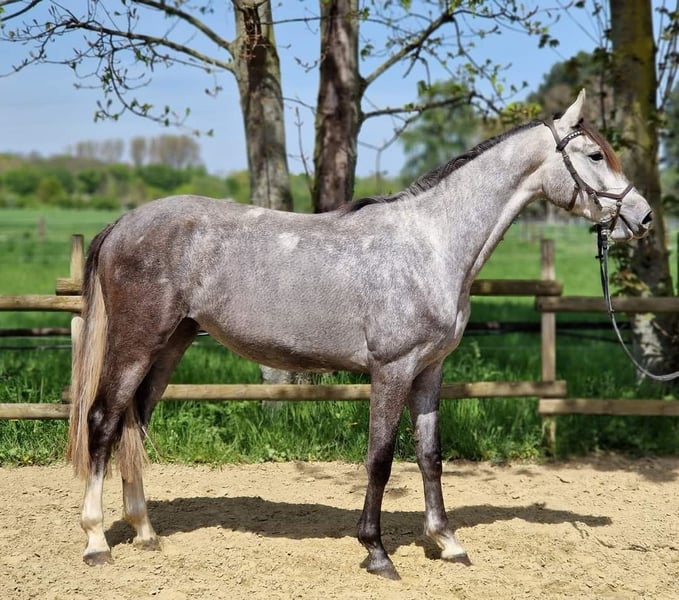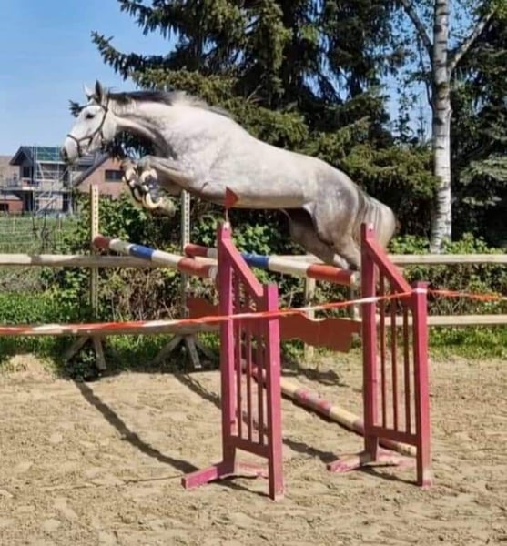 Hildegard è nata con noi il 02.2020 e attualmente ha 168 anni, anche sua madre può essere vista con noi, la madre ha avuto successo in prove di salto ostacoli fino al livello M, Hildegard conosce il puledro una volta che sa come condurre, sollevare i piedi, ha 3 anni e mezzo, conosce il peso del cavaliere, è cresciuta in una mandria e conosce la stalla aperta. Nei suoi primi tentativi di salto libero mostra ciò che vuole diventare e le sue andature lasciano aperte tutte le possibilità e i desideri. Vorremmo darle una casa piacevole e solidale dove un giorno possa iniziare una carriera sportiva dolce e dove sia vista come una compagna e non come un pezzo di equipaggiamento sportivo. Se avete altre domande non esitate a contattarmi. Due anni, radiografata a gennaio senza rischi. Il prezzo aumenta con l'ulteriore addestramento Abbiamo anche la sorella completa in vendita, lei è ora ora due anni anche lei radiografata senza rischio L'ultima foto è la sorella completa che ha un prezzo di 12000 vhb. Se avete altre domande, vi offriamo anche un pacchetto di prezzi.