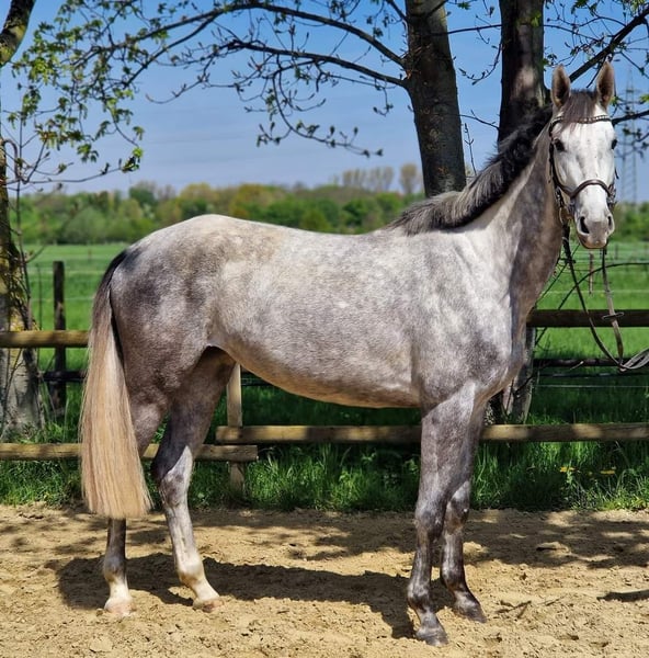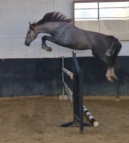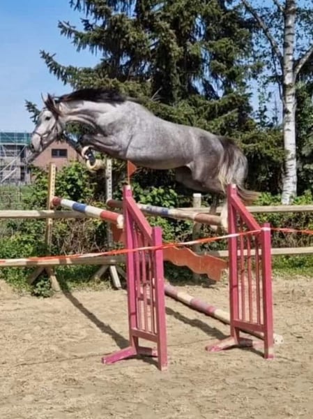Hildegard is bij ons geboren, haar moeder is ook bij ons te bezoeken. De moeder is onderweg succesvol in de Sprinfpferde M-test. Hildegard kent het veulen ooit eentje die ze weet te leiden, de tilvoeten zijn nu tweeënhalf jaar oud. Ze groeit op in een kudde en kent een open stalhouderij. In de eerste vrije sprongpogingen laat ze zien wat ze wil worden ook haar GGA laat alle wegen open ubd wensen. We willen dat ze een mooi ondersteunend huis krijgt waar ze hopelijk op een gegeven moment een rustige sportcarrière kan beginnen en waar ze wordt gezien als een partner en niet als een sportapparaat. Als u nog vragen heeft, aarzel dan niet om contact met mij op te nemen. In januari van dit jaar wordt ze zonder bevindingen röntgenfoto's gemaakt. We zouden ook de volle zus hebben om te verkopen, ze is nu anderhalf jaar oud.