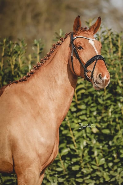 Zum Verkauf steht eine wunderschöne Hannoveraner Stute, geboren im Jahr 2020. Mit ihrem ansprechenden Dunkel-Fuchs-Farbton und einer guten Größe von 171 cm ist sie sowohl optisch als auch sportlich ein super schönes Pferd.. Sie überzeugt durch platzierungen in Dressurprüfungen. Sie zeigt viel Talent sowie Lernbereitschaft. Die Stute ist gesund, gut ausgebildet und bereit, ihre neue Besitzerin/Besitzer auf Turnieren oder im Freizeitbereich zu begleiten. Sie zeigt großes Potenzial für den gehobenen Dressursport. Zudem hat 4 Platzierungen davon konnte sie eine Dressurpferde A gewinnen. Bei Interesse oder weiteren Fragen stehe ich Ihnen gerne zur Verfügung. Eine Besichtigung und Proberitte sind nach Vereinbarung möglich.