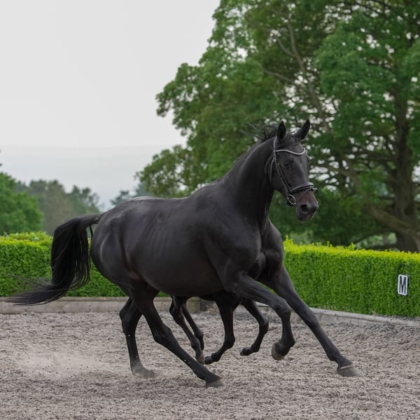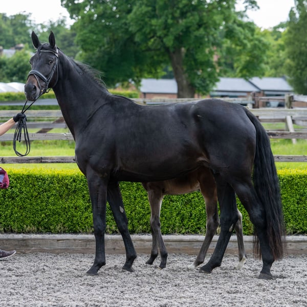 Royale to piękna, większa klacz o bardzo spokojnym charakterze i trzech dużych chodach. Jest łatwa w obsłudze pod każdym względem i była łatwą klaczą hodowlaną dwa razy oraz wspaniałą matką. Dostępna po odsadzeniu swojego obecnego super źrebaka, ale w międzyczasie może być ponownie pokryta ogierem według Twojego wyboru (na Twój koszt za nasienie i weterynarza). Może być również wspaniałą klaczą dla hodowcy, który zaczyna lub ma mniej doświadczenia, aby rozpocząć z piękną, młodą, ale łatwą klaczą z pewnym doświadczeniem hodowlanym i bardzo wyrozumiałym, cierpliwym charakterem. Nie ma historii kontuzji, może być także osiodłana po odsadzeniu i pochodzi z udanej linii matki FEI, która również osiągnęła miejsca w Mistrzostwach WBFSH dla 7-latków, więc oczekujemy, że może być bardzo udanym koniem do jazdy, a jej wspaniała, spokojna natura sprawia, że jest bardzo łatwa do rozpoczęcia. Należy zauważyć, że cierpi na słodką swędzenie, więc wymaga zarządzania w tej kwestii.