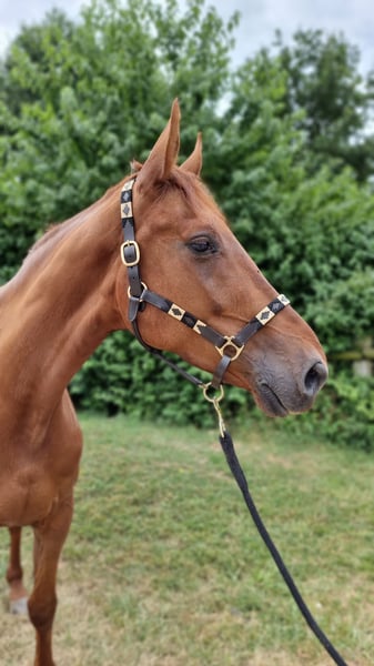 Beeindruckende Hannoveraner Stute ca. 1m74 für den gehobenen Dressursport! Traumstute in goldener Robe mit Top-Abstammung und besten Voraussetzungen. Mit ihrer hervorragenden Abstammung und ihrem ausgeprägten Talent lässt sie keine Wünsche offen. Die Stute entstammt einer hochkarätigen Linie, die für Leistungsbereitschaft, Rittigkeit und Erfolg steht: Vater: Finnigan, Muttervater: Feinsinn. Die Mutter Fee war selbst hocherfolgreich bis Intermediaire I! Mit dieser Genetik bringt sie alles mit, um in die Fußstapfen ihrer erfolgreichen Verwandtschaft zu treten. Ausbildung & Charakter: Die Stute befindet sich dank reeler, vielseitiger Ausbildung auf einem soliden Ausbildungsstand und zeigt sich rittig, lernwillig und ausdrucksstark. Spielerisch zeigt sie bereits Lektionen der Klasse M. Auf dem Militaryplatz springt sie brav kleine Baumstämme, Gräben, Auf- und Absprünge und geht problemlos ins Wasser. Sie kennt die Galoppbahn, Ausreiten und Stangenarbeit. Potenzial: Aufgrund ihrer Qualität mit der aktiven Hinterhand und ihrer Versammlungsbereitschaft ist sie das ideale Pferd für den Einstieg in die Klasse M und zur weiteren Ausbildung auf S-Niveau. Ein echtes Juwel für ambitionierte Dressurreiter. Charakter: Absolut brav im Umgang, beim Scheren und in der Führanlage. Kennt Gruppen- sowie Boxenhaltung mit täglichem Auslauf. Eine klare und ehrliche Partnerin unter dem Sattel. Gerne begrüssen wir sie zum kennenlernen in Avenches!