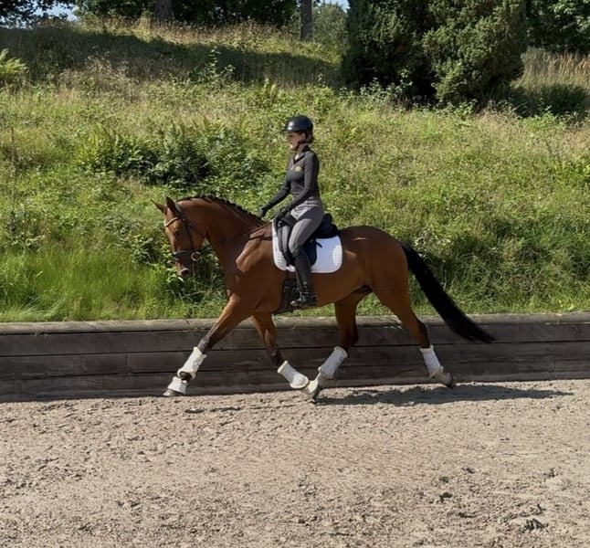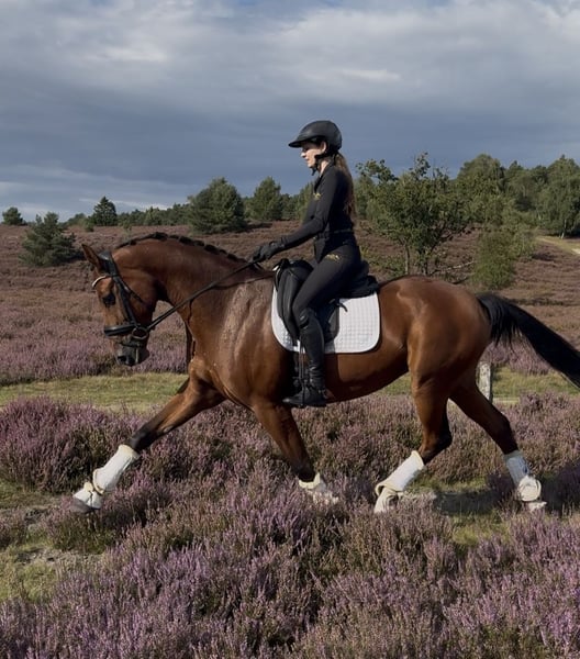 Fleur de Lis is a 2018 Hannoverian mare by Floriscount x Desperados. Fleur would be well suited to an ambitious amateur or young rider looking to move up the levels. Fleur is forward thinking and light in the contact, with clear and expressive natural gaits. She has competition experience at A level and is schooling L, but is ready to progress quickly. Fleur is easy to handle on the ground and brave to go hacking alone or in a group. She is currently barefoot and lives happily in a small herd. This is a very personable mare, who excels in an individualised program and would be happy as someone’s primary horse. For more information please do not hesitate to send me a message or give me a call. My number is +491622875335