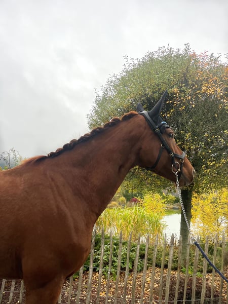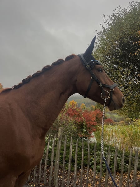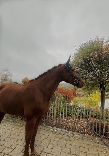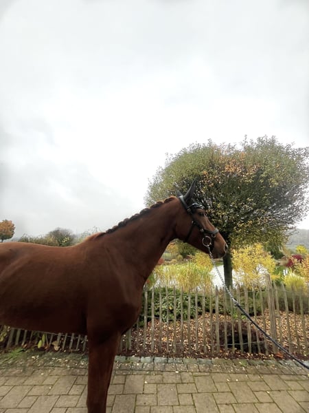 For sale is this elegant 7-year-old mare by Vito Corleone S x Wolkenstein. Not only does she impress with her outstanding pedigree, but also with her above-average basic gaits! Gentle to ride and well-trained, she is now confidently at A-level and already knows several movements of the elementary dressage class, making her a promising candidate to shine in L-Dressage with her future rider next year. She is easy to handle both in the arena, on the outdoor dressage court, and in the field, always attentive, light in the contact, and focused. She also shows talent over fences, although this has not been further developed with us. Like under saddle, she impresses with her excellent behavior on the ground, making her suitable as a horse for teenagers as well. A horse that pleases in every respect and brings a lot of joy to daily work! She is shoe- and loading-friendly and has a recent X-ray examination with no notable findings. The mare is located in 35708 and can be tested at any time. For more information, please contact: 017620052380, WhatsApp available.
