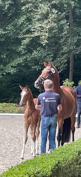 Zentina is a very beautiful and charming mare that brings joy every day! She was lightly backed at age three, then had two strong-moving foals, and is now being retrained. She responds very well and always wants to please. Whether under saddle, in handling, or during loading – she is consistently straightforward and easy to handle. She is also of interest for breeding: She comes from an excellent bloodline; her mother is a full sister to Nymphenburg’s First Ampere! She has always become pregnant immediately and foaled without any issues. If you are looking for a lovely mare, she is the perfect choice! For more information, please feel free to call or message via WhatsApp at 0172-2942839.