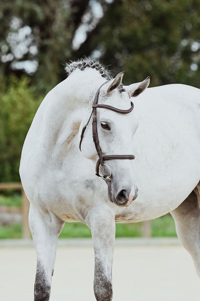 Bildhübsche Schimmelstute mit Turniererfahrung.