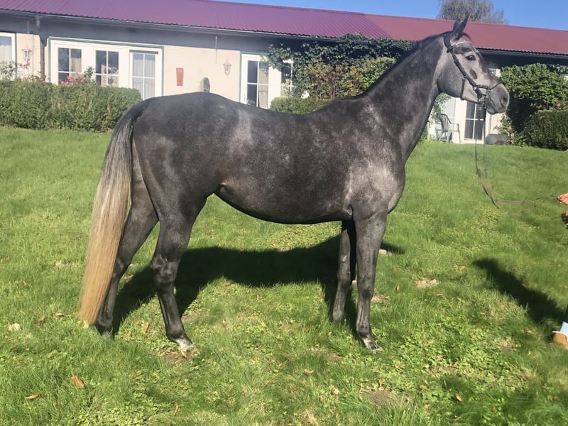 Cleopatra is a large-framed, expressive Cornet Obolenski daughter from a highly successful, old Hanoverian dam line. Her granddam Waleska by Watzmann is a 3/4 sister of the Olympic champion Walzerkönig (Franke Sloothaak). She is a full sister to the AES-licensed Cornets Acorado, who breeds in Holland. Her beautiful face and correct, stable foundation are outstanding. Her character is friendly and socially acceptable. She passed the Hanoverian broodmare test at the age of 3 and produced a foal at the age of 4 (by Meganus PS). After weaning, she was broken in again, goes easily in all three basic gaits and can already do individual jumps under the rider. She has been examined and x-rayed by a vet and has been awarded the "Vet+" health premium by the Hanoverian Verband.