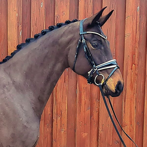 Die positive Solidität von Freya durchzieht alle Attribute ihrer Erscheinung. Schon als junges Pferd stellte sie ihre Bewegungsqualität sowie die Harmonie und Korrektheit des Körpers unter Beweis und erhielt den Titel „Hannoveraner Prämie“. Abgerundet wird dies durch ihre „dunkle Jacke“, so dass Freyas Auftritte im Gedächtnis bleiben. Die gerade siebenjährige Stute bewegt sich locker-elastisch, zudem kommt ihr die Tragfähigkeit ihres Hinterbeins für die weitere Versammlungsarbeit entgegen. Mit ihrem kompakten Körper und der gut bemuskelten Halsung stellt sich Freya im Seitenbild durchgehend in guter Aufrichtung dar. Auf intensive Turnierstarts lag bislang nicht der Fokus, zum Abfragen des Ausbildungsstandes wurde daher nur vereinzelt an Turnieren teilgenommen. Dabei absolvierte Freya den gesamten Turnierablauf unkompliziert. Zu Beginn ihres siebten Lebensjahres ist Freya ebenfalls als besonders solide ausgebildet zu bezeichnen. Da sich im Training die Ansätze der nächsthöheren Lektionen bereits abfragen lassen, ohne die Stute zu überfordern, sollte die Weiterentwicklung in die Klasse S für sie keine schwierige Herausforderung sein. Sportname: Freya 391 Sporterfolge: RPF: 1/2 DPF (Dressurpferdeprüfung) Klasse A (Dpf A): 1/w Klasse L (Dpf L): 1/3 Klasse M (Dpf M): 1/4 Zuchtprämie: 1xIa. Leistungsprüfung: Hannoveraner Sporttest Dressur - Trab 8,00 Galopp 7,50 Schritt 7,50 Rittigkeit 8,00 Turniernote 6,30 Prämie: HannPr 1. Generation Sportpferde Dressur: De Nino v. Don Schufro (DRE: int. Grand Prix mit Franziska Haase,Dressurprüfung Kl. S*** - Grand Prix de Dressage 2025,Dressurprüfung Kl.S*** mit Piaffe und Passage 2025,Dressurprüfung Kl. S*** - Grand Prix de Dressage 2025,Dressurprüfung Kl. S*** - Grand Prix Special - 2025,Dressurprüfung Kl. S*** - Grand Prix de Dressage 2024,Dressurprüfung Kl. S*** - Grand Prix de Dressage 2024,Dressurprüfung Kl. S*** - Grand Prix de Dressage 2024,Dressurprüfung Kl. S*** - Grand Prix Kür - 2023,Dressurprüfung Kl. S*** - Grand Prix de Dressage 2023,Dressurprüfung Kl. S*** - Grand Prix de Dressage 2023,Dressurprüfung Kl. S*** - Grand Prix de Dressage 2021,Dressurprüfung Kl. S*** - Grand Prix de Dressage 2021,Dressurprüfung Kl. S*** - Grand Prix de Dressage 2021,Dressurprüfung Kl. S*** - Grand Prix Special - 2020,Dressurprüfung Kl. S*** - Grand Prix de Dressage 2020,Dressurprüfung Kl. S*** - Grand Prix Kür - 2020,Dressurprüfung Kl. S*** - Grand Prix de Dressage 2020,Dressurprüfung Kl. S*** - Grand Prix de Dressage 2020,Dressurprüfung Kl. S*** - Grand Prix de Dressage 2019,Dressurprüfung Kl. S*** - Grand Prix Kür - 2018). Aufbauprüfungen Dressur: HannPrA Ext+ Frida/Frida 94 v. Fürst Romancier (DRE: L). Auktionspferde: Gillette v. Global Player (FoVA 2021). 2. Generation Aufbauprüfungen Dressur: Dewi 4 v. Dauphin (DRE: L); She's a Lady 11 v. Sandro Hit (DRE: L). Auktionspferde: Dirty Dancing T v. Dauphin (VA 2011). Bes. Prämientöchter: StPr Sandros Girl v. Sandro Hit. 3. Generation Sportpferde Dressur: Don 535 v. Dauphin (DRE: Grand Prix mit Eva-Maria Fey,Dressurprüfung Kl. S*** - Grand Prix Special - 2021,Dressurprüfung Kl. S*** - Grand Prix Special - 2021,Dressurprüfung Kl. S*** - Grand Prix Special - 2020,Dressurprüfung Kl. S*** - Grand Prix Special - 2020,Dressurprüfung Kl. S*** - Grand Prix Special - 2020,Dressurprüfung Kl. S*** - Grand Prix Special - 2020,Dressurprüfung Kl. S*** - Grand Prix de Dressage 2020,Dressurprüfung Kl. S*** - Grand Prix Special - 2019,Dressurprüfung Kl. S*** - Grand Prix de Dressage 2019,Dressurprüfung Kl. S*** - Grand Prix Special - 2019,Dressurprüfung Kl. S*** - Grand Prix de Dressage 2019,Dressurprüfung Kl. S*** - Grand Prix de Dressage 2019,Dressurprüfung Kl. S*** - Grand Prix de Dressage 2019,Dressurprüfung Kl. S*** - Grand Prix Special - 2019,Dressurprüfung Kl. S*** - Grand Prix de Dressage 2018,Dressurprüfung Kl. S*** - Grand Prix de Dressage 2018); Razida v. Rohdiamant (DRE: int. S** mit Heike Hamel,Championat für Reitpferde o.M. 2002); Fidelio 317 v. Fürstbischof (DRE: M* mit Melissa Wunderlich). Auktionspferde: Raffaella/Raffaella 2 v. Royal Blend (VA 2010). Bes. Prämientöchter: StPr Ratina v. Rohdiamant. 4. Generation Sportpferde Dressur: Warhol v. Western Star (DRE: Grand Prix mit Aigner,Wolfgang,Dressurprüfung - Grand Prix Special 1996,VA 1990: 60.000 €,HM 1989); Sunlight 13 v. Sherlock Holmes (DRE: M* mit Cristin Breyer,SPR: int. 1,40 m mit Cristin Breyer); Wolkentänzer 3 v. Wolkentanz (DRE: M* mit Claudia Göthling,VA 2000). Sportpferde Springen: Sunlight 13 v. Sherlock Holmes (DRE: M* mit Cristin Breyer,SPR: int. 1,40 m mit Cristin Breyer). Auktionspferde: Einstein 64 v. Escudo I (VA 2003); She's a Lady/She's a Lady 3 v. Sherlock Holmes (VA 1998); V. Wanderer v. Wanderer (VA 1992). Bes. Prämientöchter: StPr Wolara v. Wohlklang. 5. Generation Sportpferde Springen: Summersby 15 v. Stakkato (SPR: 1,40 m mit Michael Symmangk); Action T v. Adlantus As (SPR: 1,35 m mit Lisa Tiedje); Wellington 92 v. Wendelin (SPR: M mit Reichwein,Bettina). Aufbauprüfungen Dressur: Wenzel 55 v. Wohlklang (DRE: L). Aufbauprüfungen Springen: Greyman T 3 v. Grey Top (SPR: 1,30 m mit Thilo Schulz); Stella T v. Stolzenberg (SPR: L); WATTEAU 28 v. Wohlklang (SPR: L). gekörte Hengste: gek. Hengst Schroeder/von Sandro Hit v. Sandro Hit (Verden 2006,HM 2006). Bes. Prämientöchter: StPr Santina/Santina 52 v. Sandro Hit; StPr Esmeralda v. Escudo I (Ratje Niebuhr-Schau Verden 2002,Louis Wiegels-Schau Uelzen 2003). Mutter: Sandros Girl Prämierung: 1xIa. ZL: 16/9 ZSP: Feldprüfung Reitpferd - Trab 8,50 Galopp 8,00 Schritt 7,00 / Durchschnitt Rittigkeit 8,00 / Durchschnitt Springen 6,00 Großmutter: Ratina Prämierung: 2xIa. ZL: 7/5 ZSP: Feldprüfung Reitpferd - Trab 7,00 Galopp 8,00 Schritt 9,00 / Durchschnitt Rittigkeit 8,50 / Durchschnitt Springen 6,00
