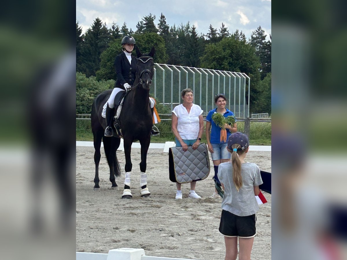 Our "Franzi" is an elegant and modern mare with three excellent gaits, already placed multiple times and victorious in dressage horse competitions at classes A and L. She is on her way to class M. This 6-year-old, well-built mare impresses with her three very good gaits, her positive attitude, rideability, and outstanding willingness to perform. She has completed a solid basic training and shows great talent for further development. With her good pedigree and excellent character, she is an ideal partner for ambitious riders who value quality and performance. I am happy to provide videos and additional information by phone. Viewing and trial rides are available by appointment.