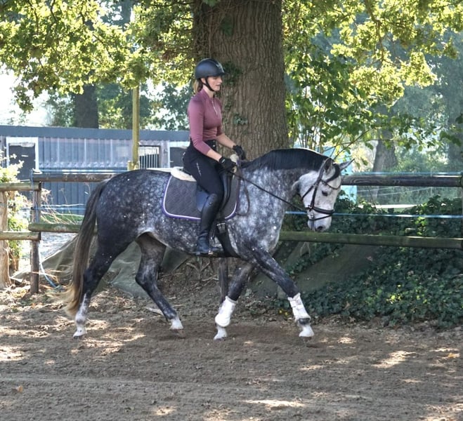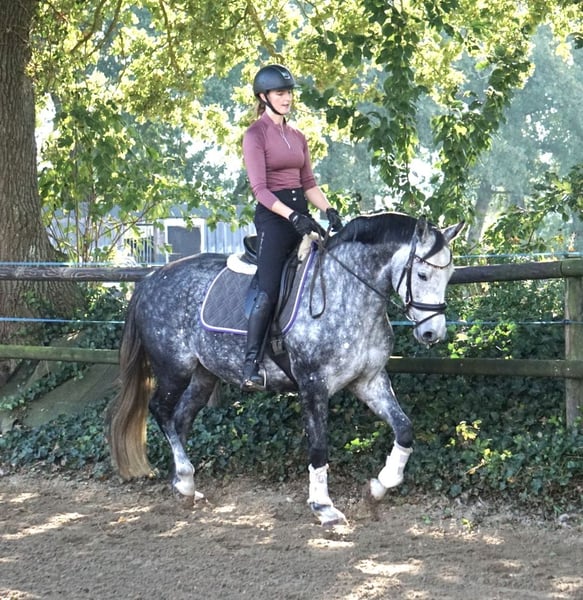 Beautiful mare with heart and potential – "Dia Casina" is looking for her new home Breed: Hanoverian Gender: Mare Year of Birth: 2019 Height: 16.1 hh Pedigree: Diacontinus x Casino Berlin x Carismo Dia Casina is a charming, expressive mare with a striking presence and a lot of charisma. Her conformation and temperament also impress with their positive appearance. She impresses with her loving nature – both in daily handling and under saddle. She has already been successfully shown in competitions and consistently demonstrates motivation, attentiveness, and willingness to perform. In 2023, she foaled a Casallco colt, which won at the show and was thus qualified for the foal championship. In 2024, due to my limited time, she was not worked extensively. She has been gently trained and will be regularly ridden from winter 2024/25 onward. In jumping, she shows great scope, talent, and excellent technique. She is also calm and fearless in the outdoor riding environment, having experienced tractors, cars, farm machinery, other animals, and more at our farm. In dressage, she is sensitive to aids, reacts very finely, and is attentive to her rider. Due to her work ethic, she is looking for a rider with a delicate feel in the saddle. In daily handling, Dia Casina is friendly, people-oriented, and uncomplicated. Whether in the indoor arena, on the riding field, or in the outdoor environment – she always proves to be reliable. She is being sold due to her own offspring. Health: Regularly vaccinated, dewormed, regularly trimmed by the farrier, currently sound (X-rays available upon request from October 2025). Temperament: Curious, people-oriented, well-behaved, very eager under saddle. Suitable for: Leisure riding / Dressage / Jumping / Breeding Location: Großefehn, 26629 A loving home is especially important to me – therefore, she will only be placed in the best hands. 📞 Contact: +49 1739022088 📸 More photos and videos gladly available upon request!