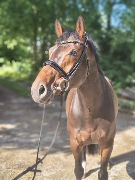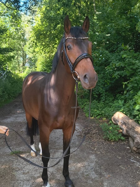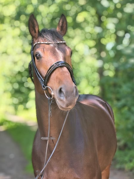 Casmira is a very special horse with an equally remarkable presence! She comes directly from the breeder and has been gently trained due to limited time. Casmira is confidently ridden in all three gaits, is familiar with small jumps under saddle, and can perform flying changes in the show jumping course. She requires a rider with a sensitive hand. When free jumping, she demonstrates great talent, agility, quick reflexes, and excellent overview. In 2022, she impressed with good results at the free jumping competition in Verden. Otherwise, she has not been publicly presented so far. She is also very motivated during ground work and always wants to do everything correctly. Her dam, the state premium mare Europa, has produced numerous successful sport offspring up to 1.40m show jumping and herself achieved an outstanding mare performance test. Casmira grew up on our extensive marshland pastures in a large herd and is well socialized. She has never been ill, has no eczema or similar issues. She is straightforward and well-behaved in handling. She is familiar with agricultural machinery, cows, chickens, and dogs. She is curious and interested in her environment but unafraid. If you are interested, I am happy to provide further information and arrange a viewing. Contact me to learn more about this promising horse!