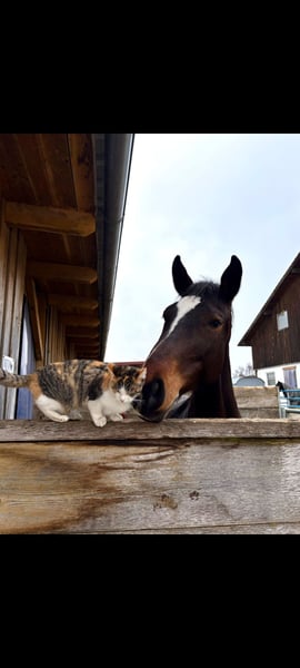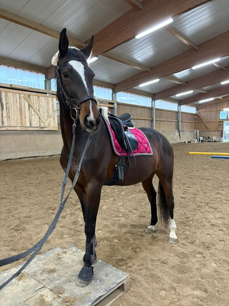 Zum Verkauf steht meine 8-jährige Stute Be Happy mit einem Stockmaß von ca. 1,64 m. Sie überzeugt mit sehr guten Grundgangarten und viel Ausdruck. Aktuell steht sie wieder im Aufbautraining. Be Happy wurde angeritten und absolvierte 2022 die Stutenleistungsprüfung, war jedoch bisher nicht im Turniersport und besitzt keine Platzierungen. Frei springt sie mit Freude und Talent. Unter dem Sattel steht sie aktuell nur wenig im Training, weshalb es momentan vorkommen kann, dass sie sich sehr schnell ablenken lässt. Sie benötigt daher einen ruhigen, konsequenten und erfahrenen Reiter, der ihr Sicherheit gibt und ihr klare Strukturen vermittelt. In der Handarbeit zeigt sie sich sehr motiviert, arbeitet aufmerksam mit und lernt neue Übungen schnell. Im Gelände ist sie aufgrund fehlender Erfahrung noch schreckhaft. Im Umgang ist sie grundsätzlich brav, testet jedoch gerne ihre Grenzen – sie ist daher kein Anfänger- oder Kinderpferd. Verladen funktioniert mit Futter gut. Gesundheit: Be Happy ist PSSM 2 px positiv getestet. Mit entsprechendem Fütterungsmanagement ist sie gut eingestellt. Gelegentlich zeigt sie Verspannungen im Rücken, besonders bei kalter Witterung. Haltung: Sie kann nicht mit oder direkt neben einem Wallach stehen, da sie sonst dauerhaft rossig wird. Ich wünsche mir für sie einen erfahrenen Reiter mit Herz, Geduld und Durchsetzungsvermögen, der ihren Charakter zu schätzen weiß und bereit ist, mit ihr weiterzuarbeiten. Standort: Nähe Rohr in Niederbayern Preis: VB - Platz vor Preis Besichtigung: Das Pferd kann gerne besichtigt werden, Bodenarbeit ist möglich. Reiten nur bedingt aufgrund ihres aktuellen Trainingszustandes.